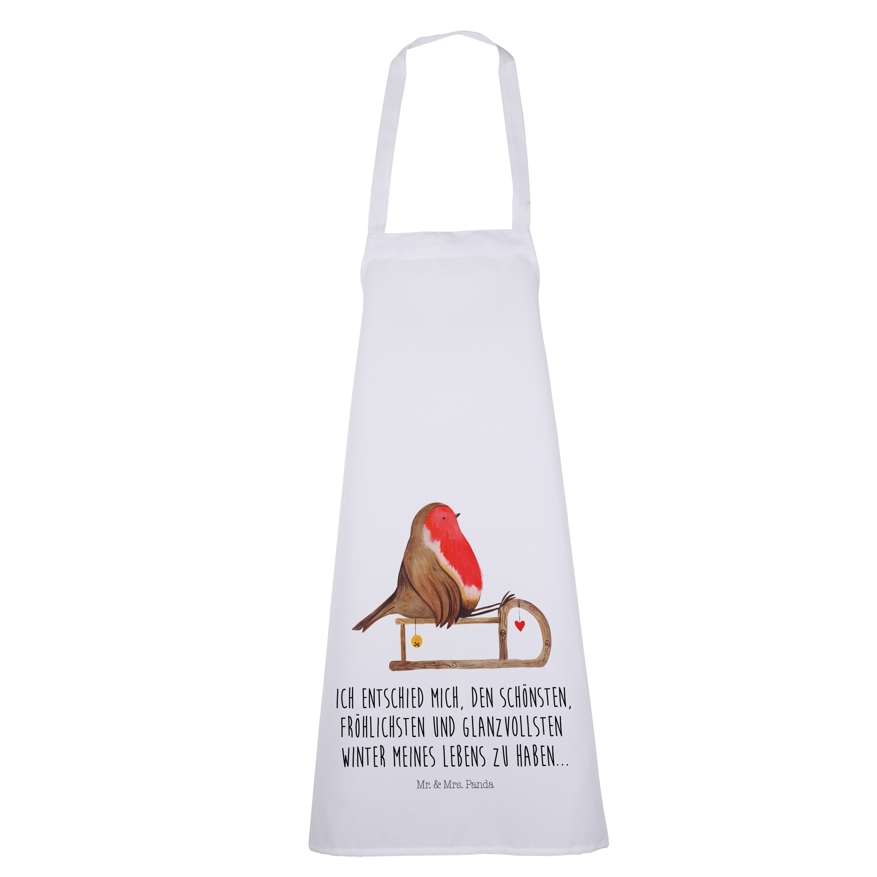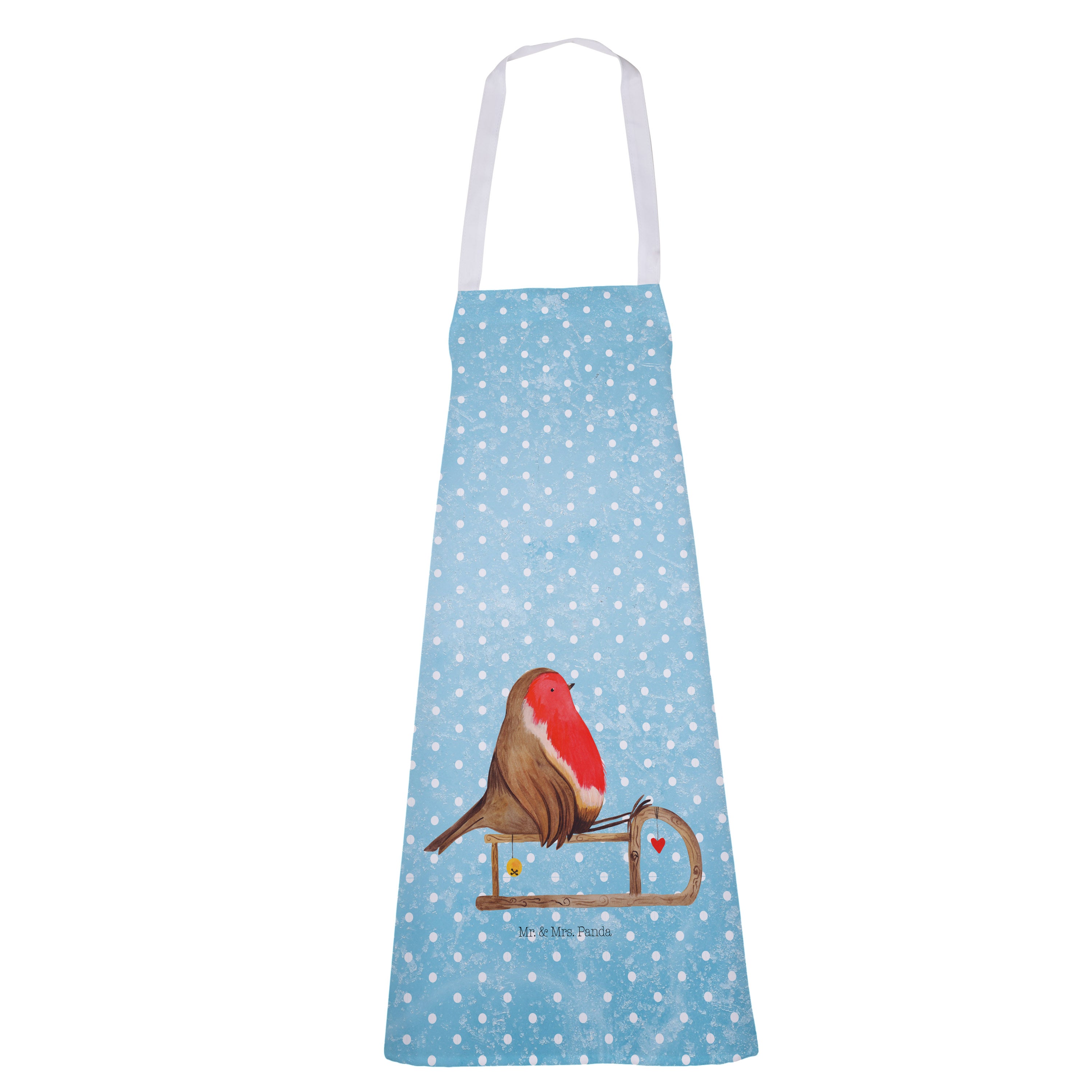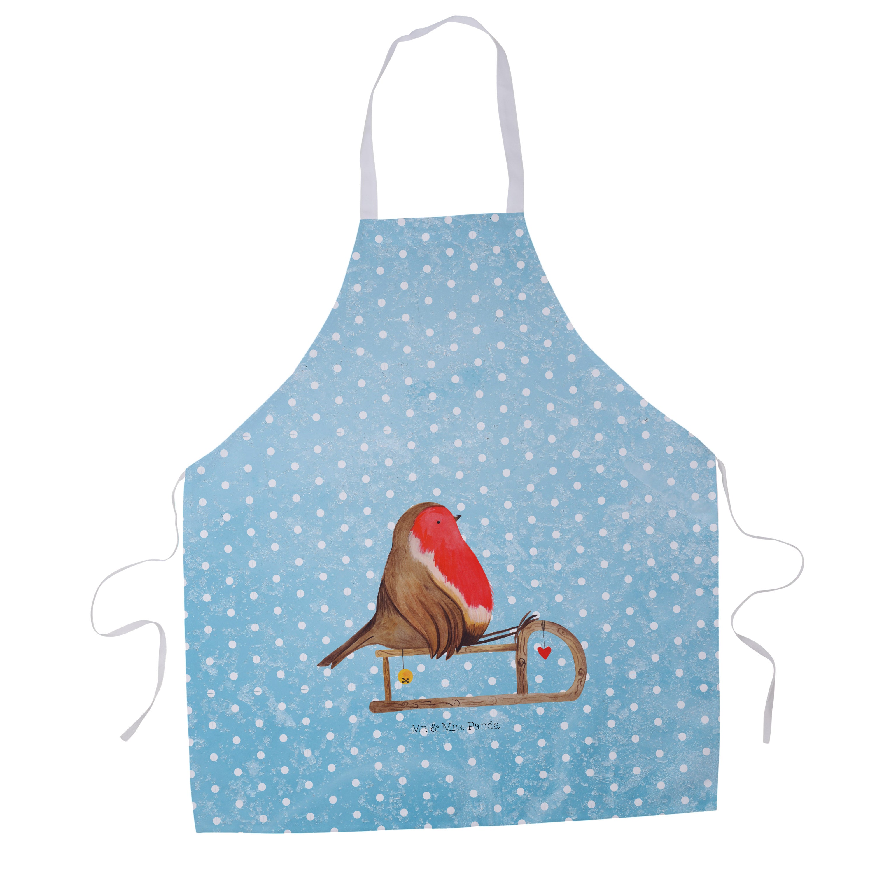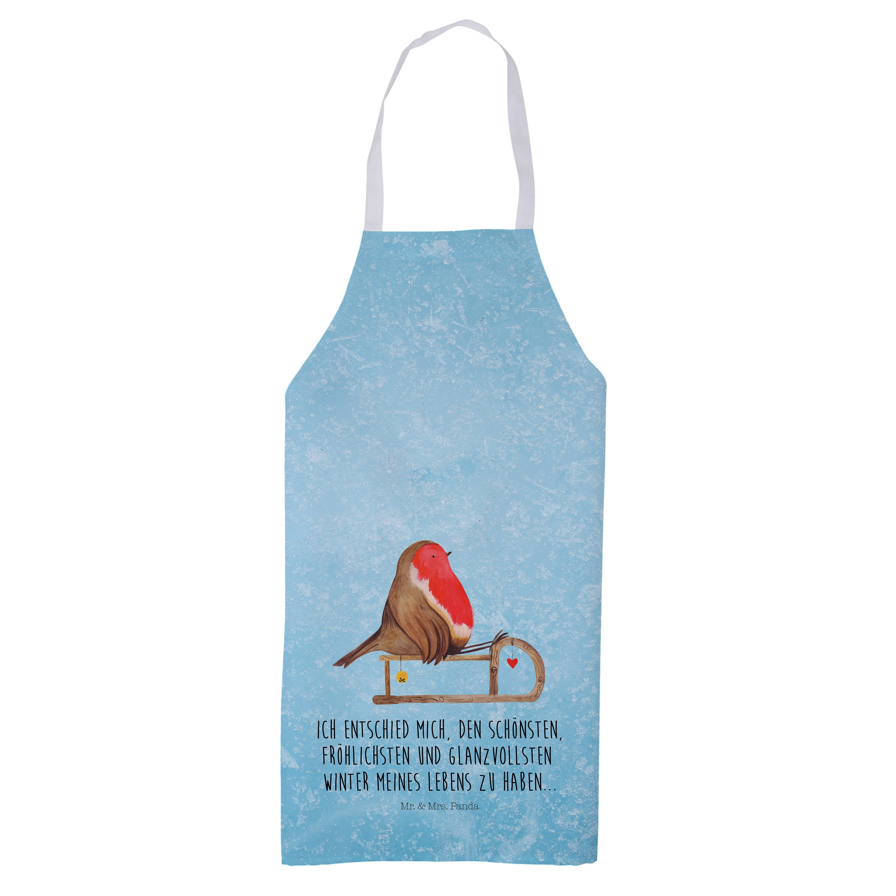 Kochschürze Rotkehlchen Schlitten - ohne Spruch - Eisblau