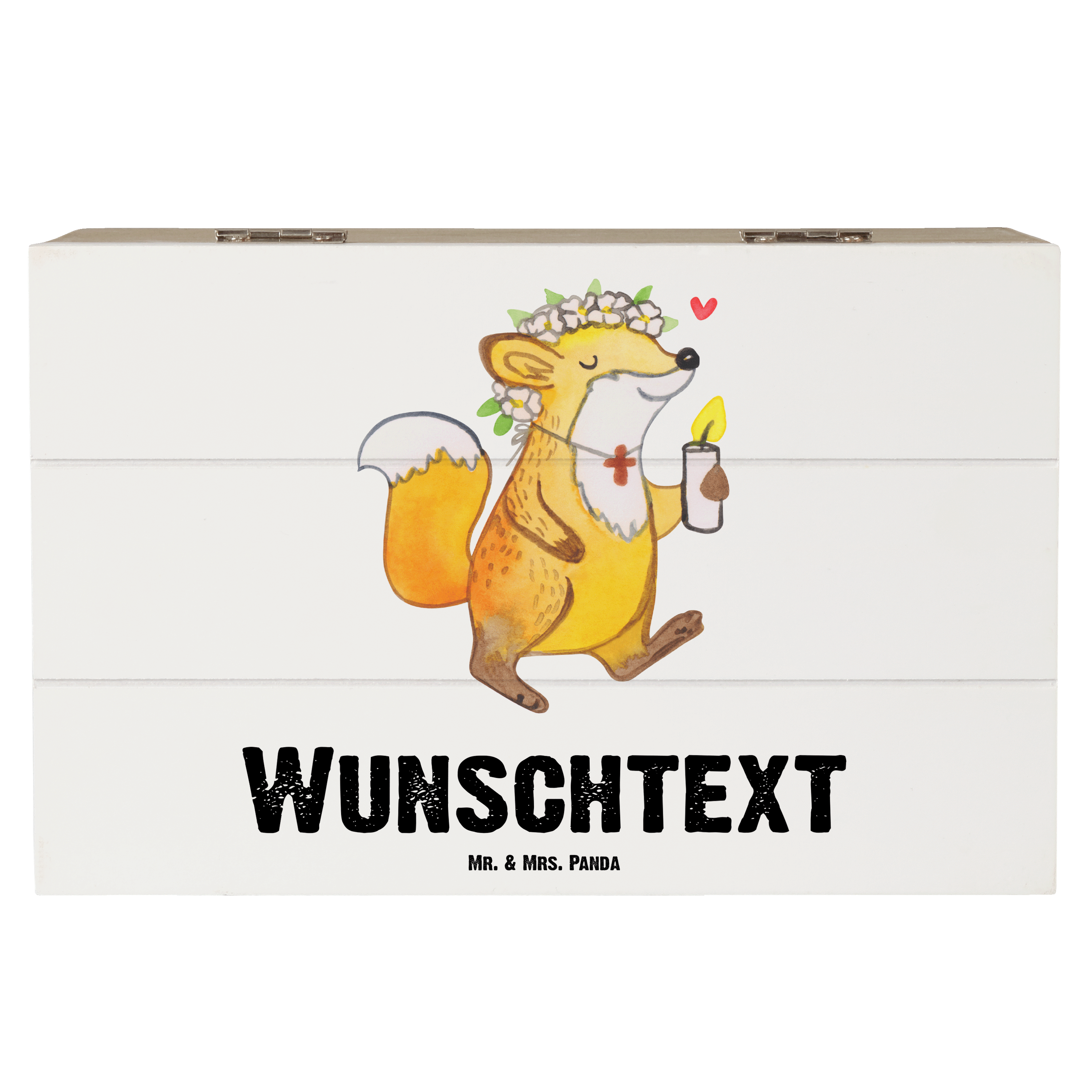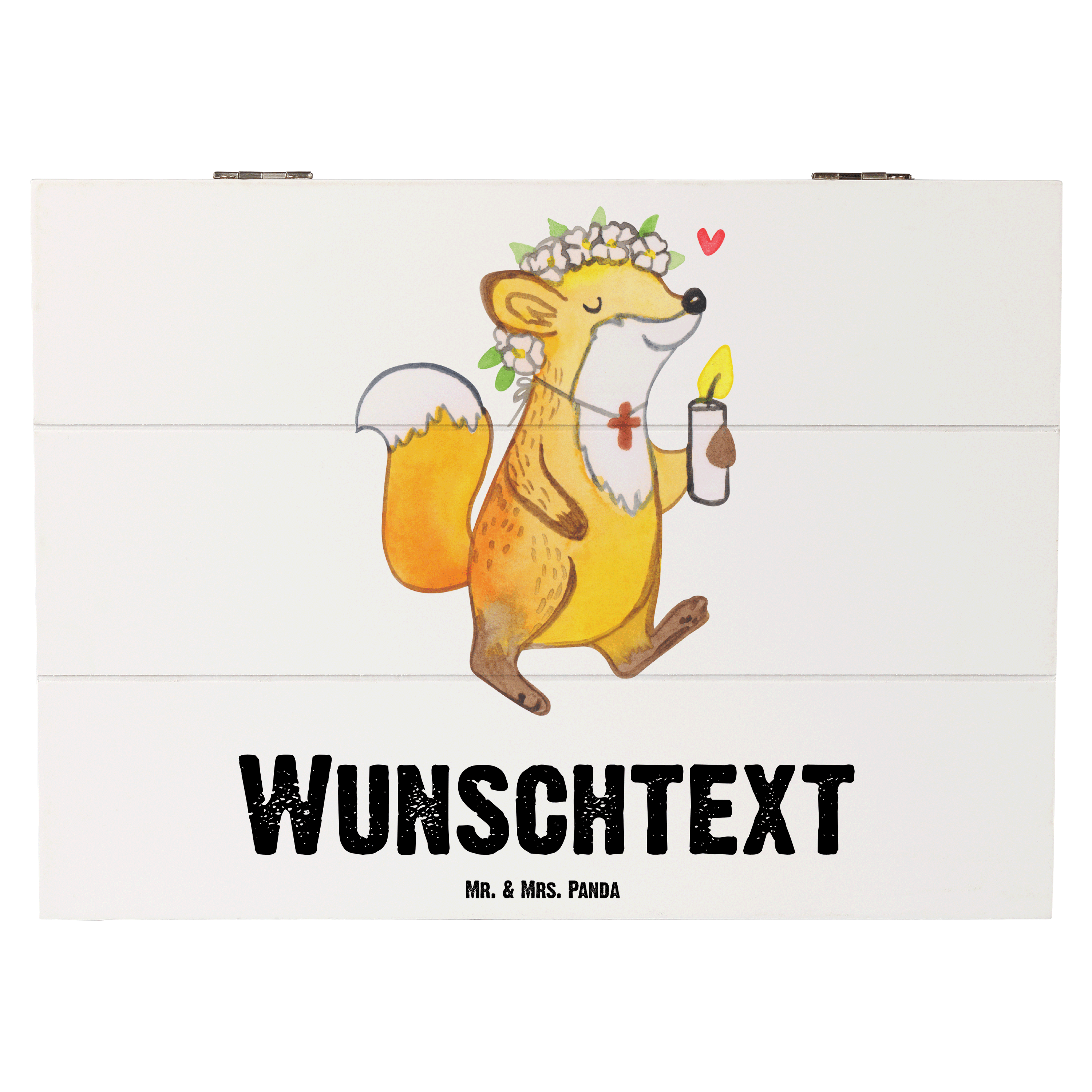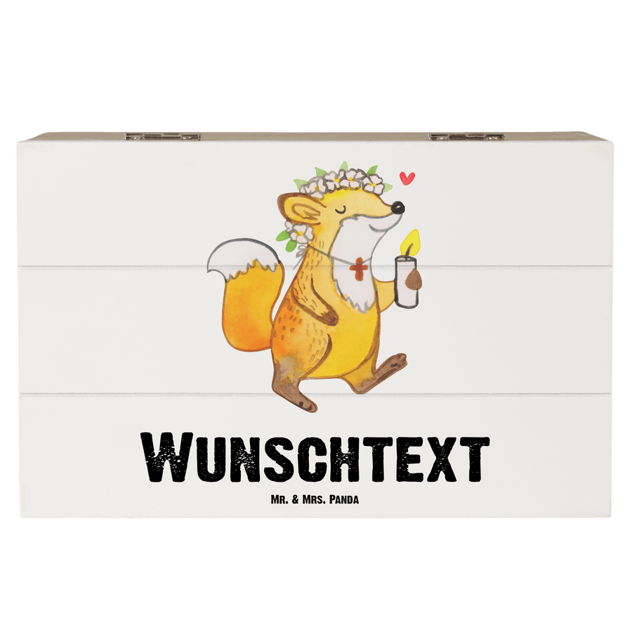 Personalisierte Holzkiste Fuchs Kommunion Mädchen - Weiß - 19 x 12 cm