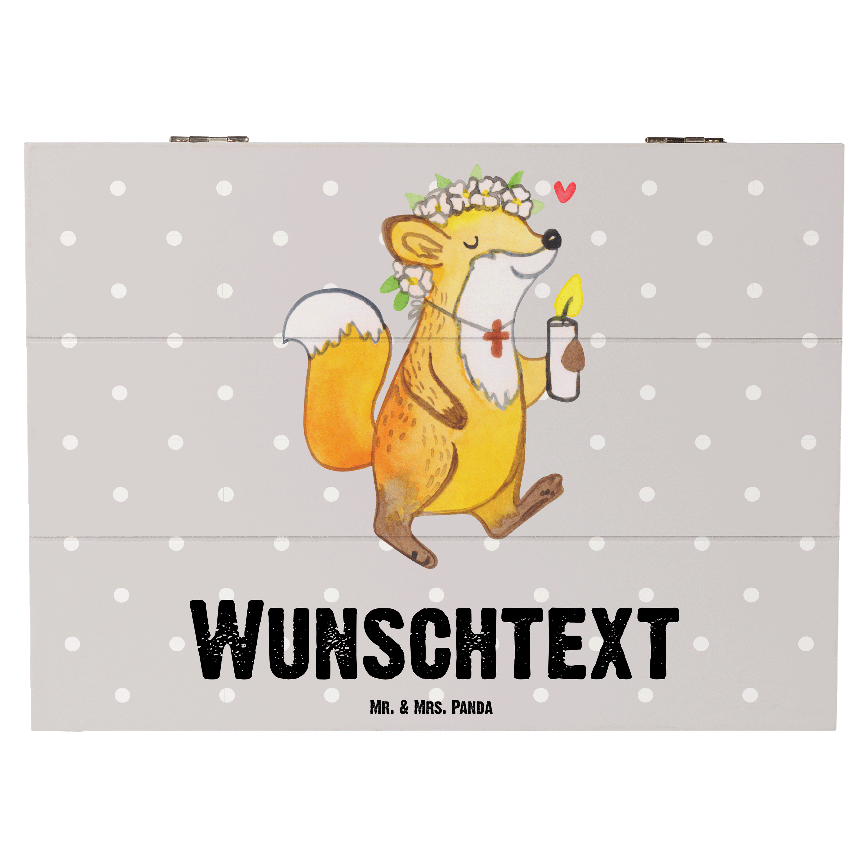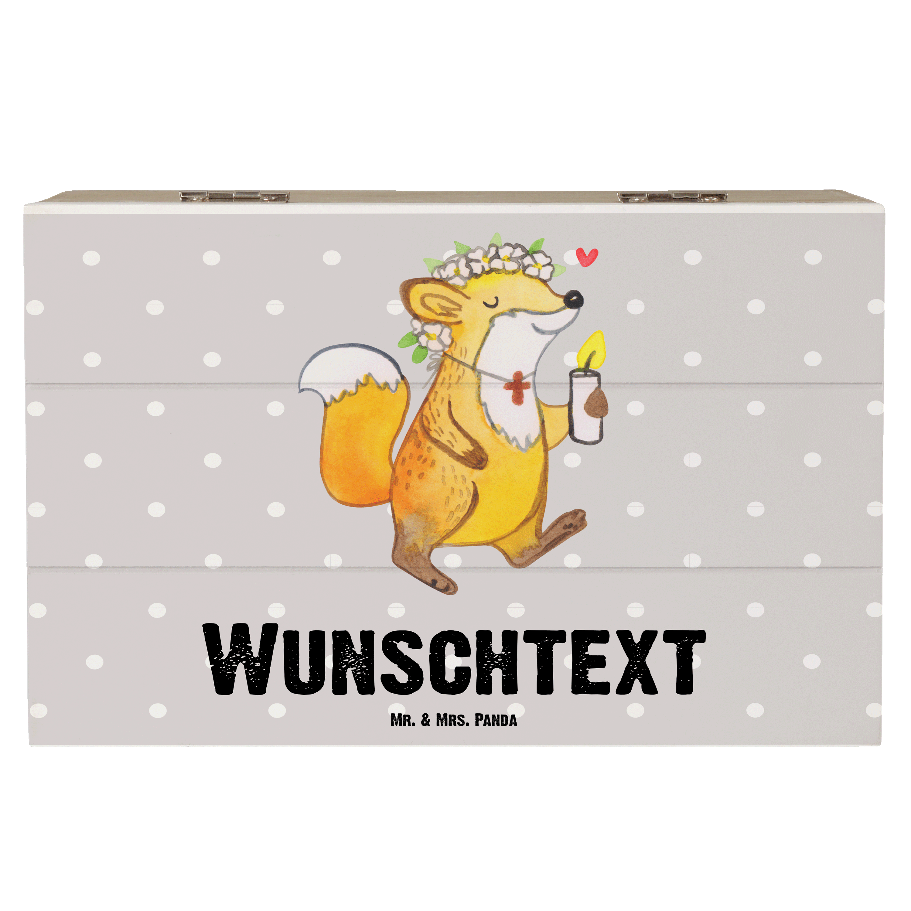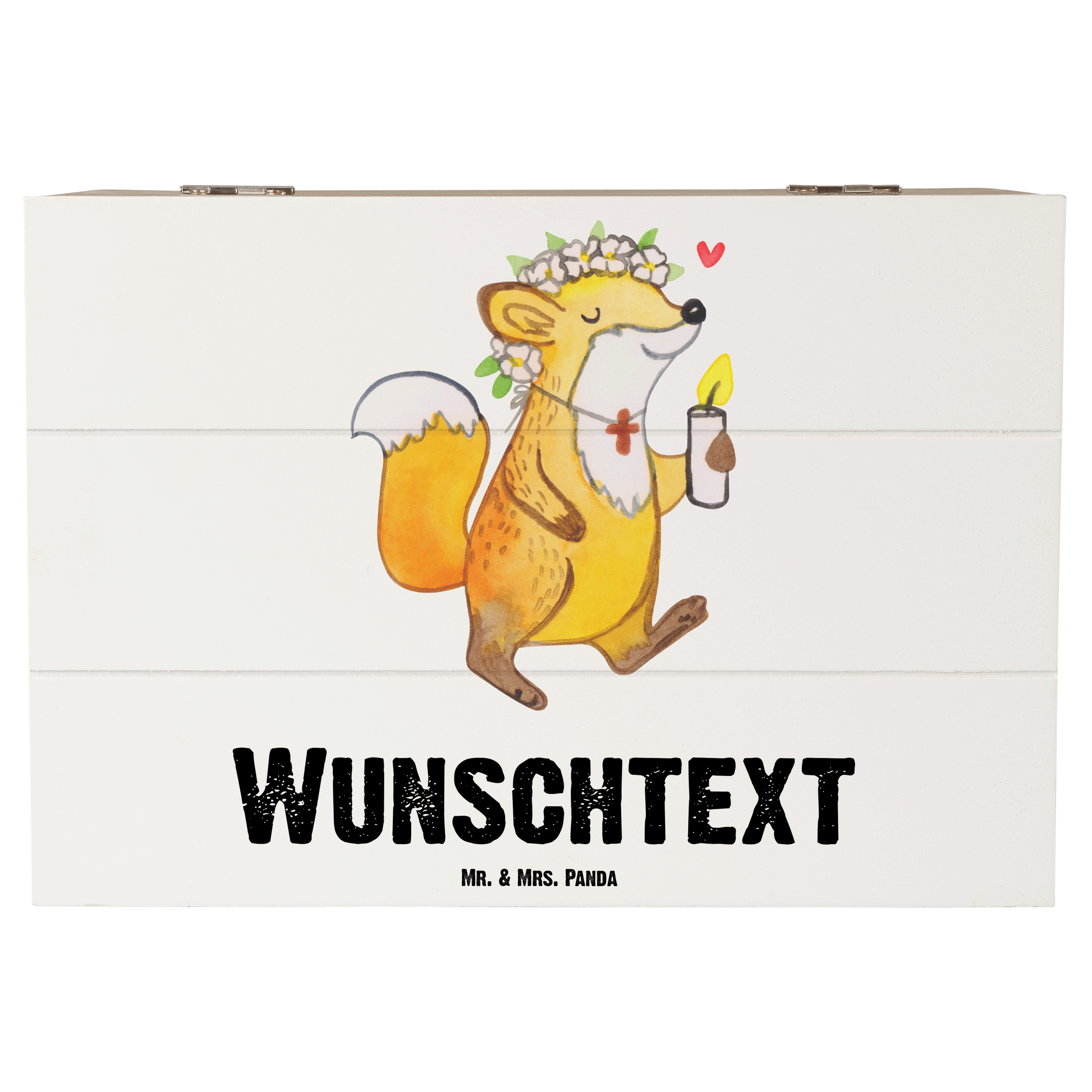 Personalisierte Holzkiste Fuchs Kommunion Mädchen - Weiß - 19 x 12 cm