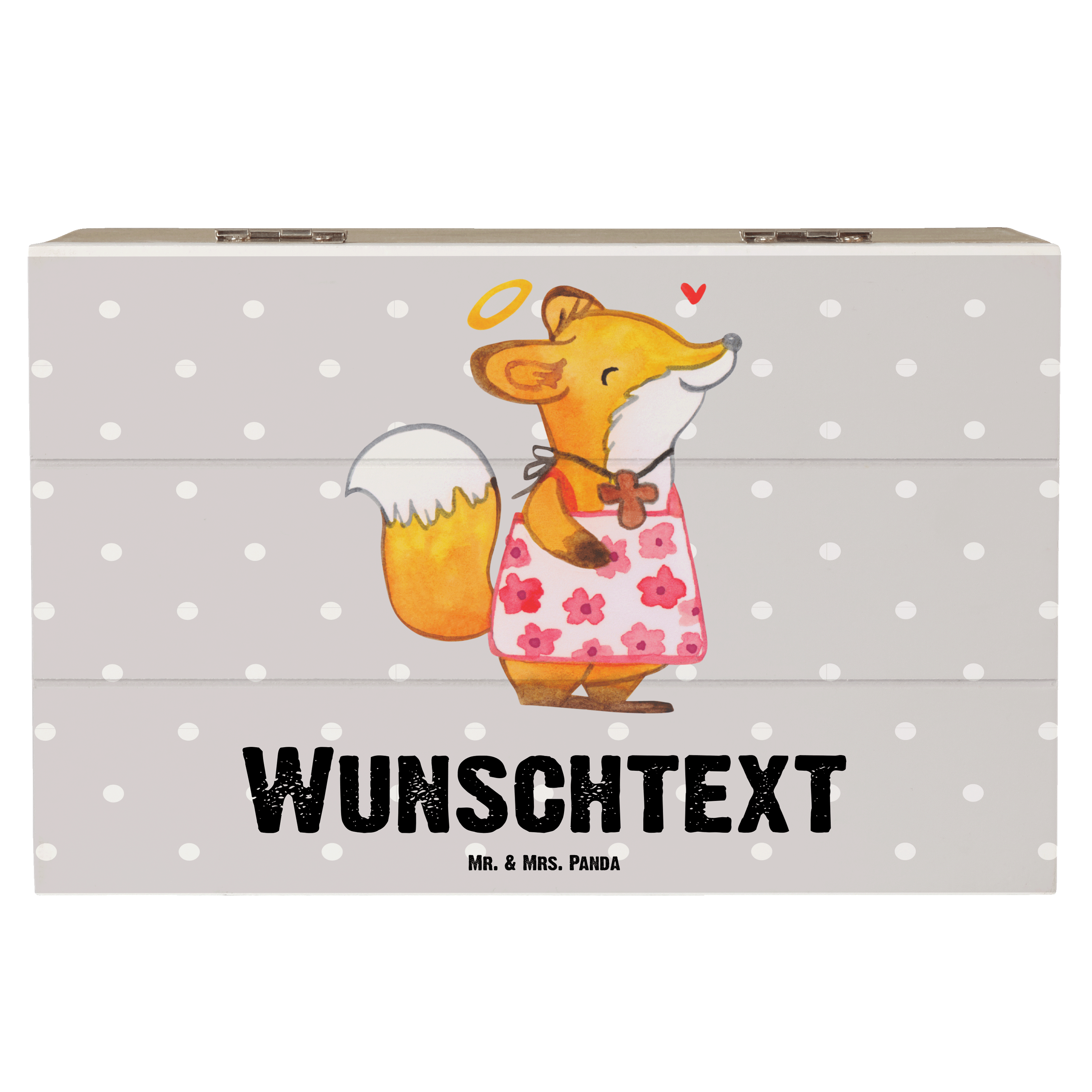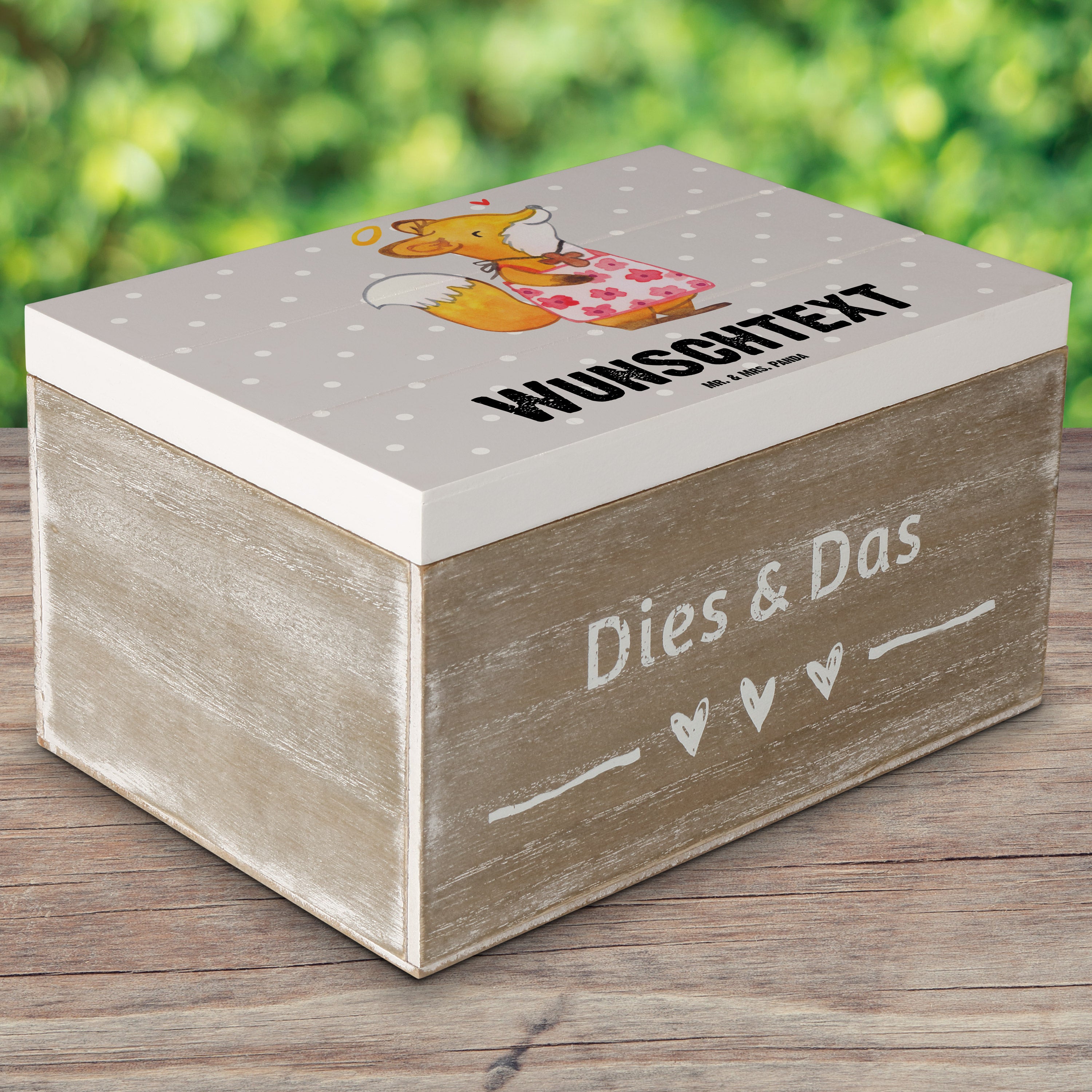 Personalisierte Holzkiste Fuchs Konfirmation Mädchen - Grau Pastell - 19 x 12 cm