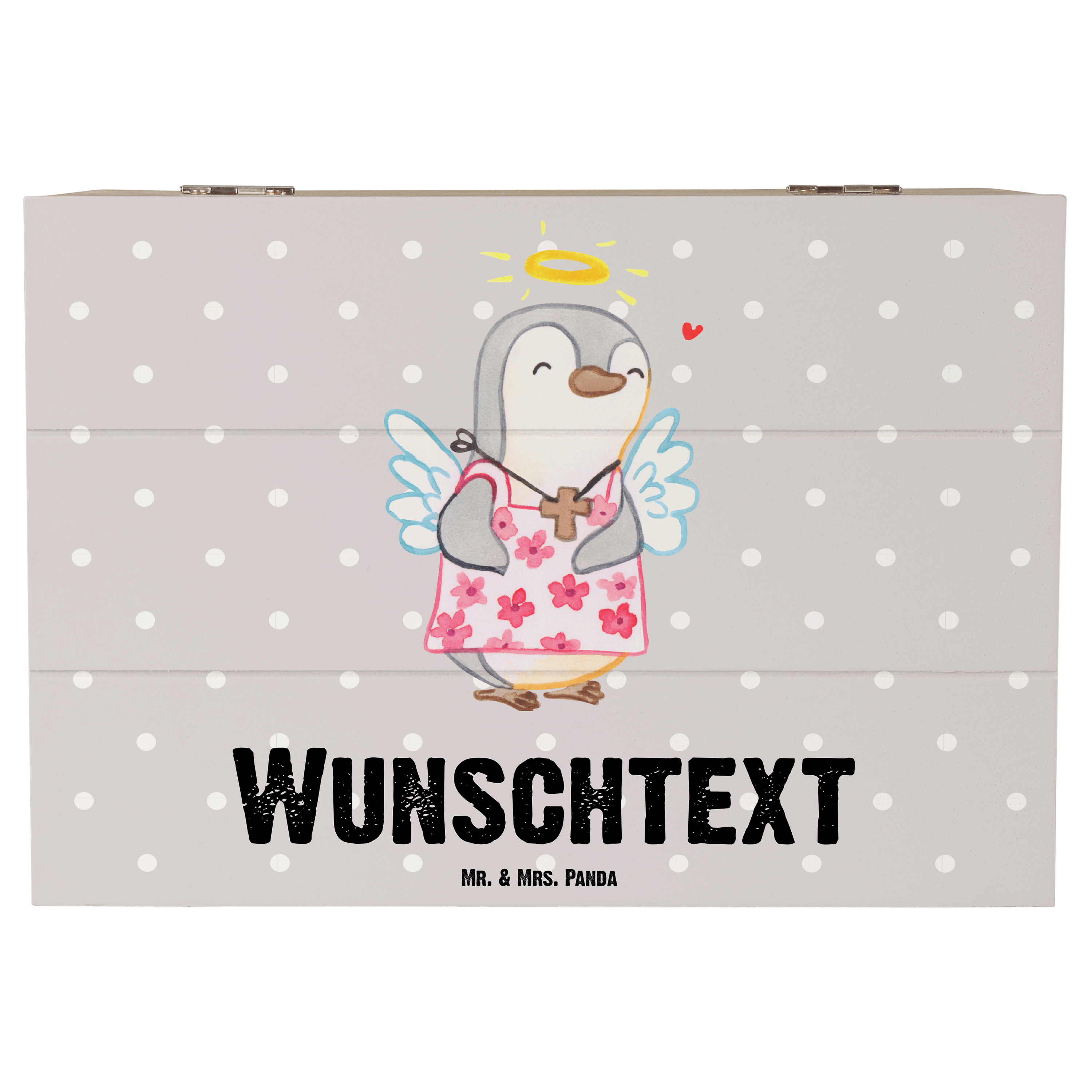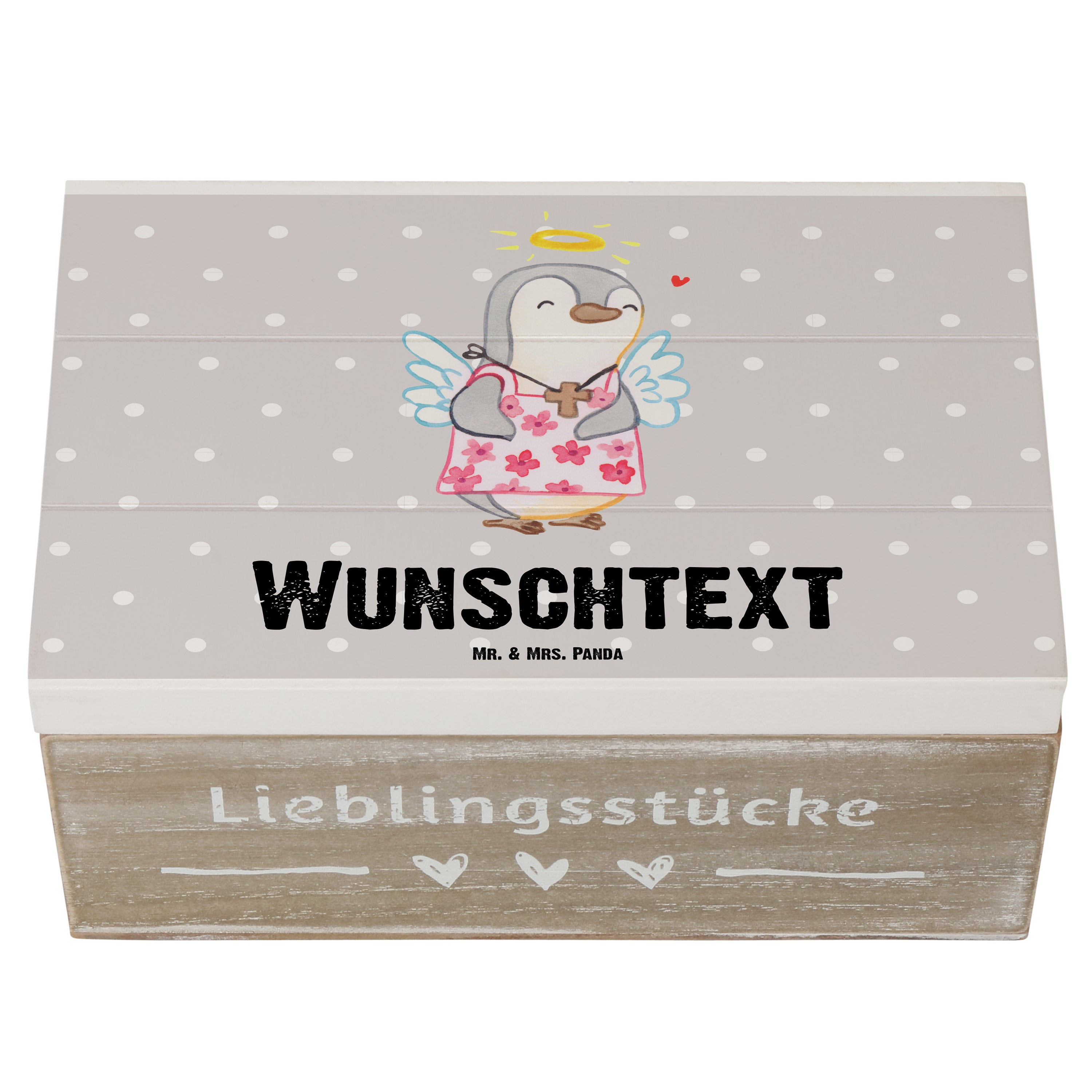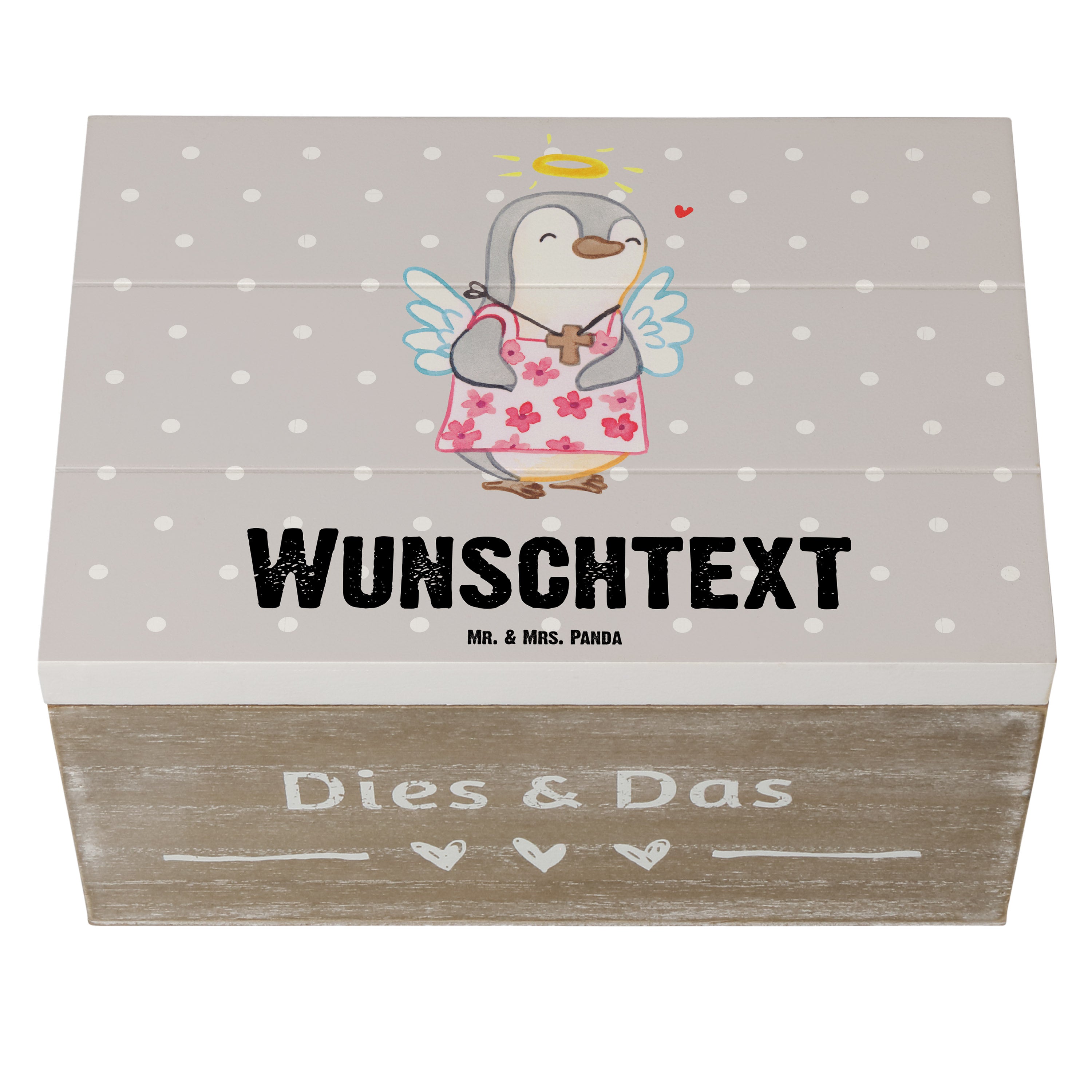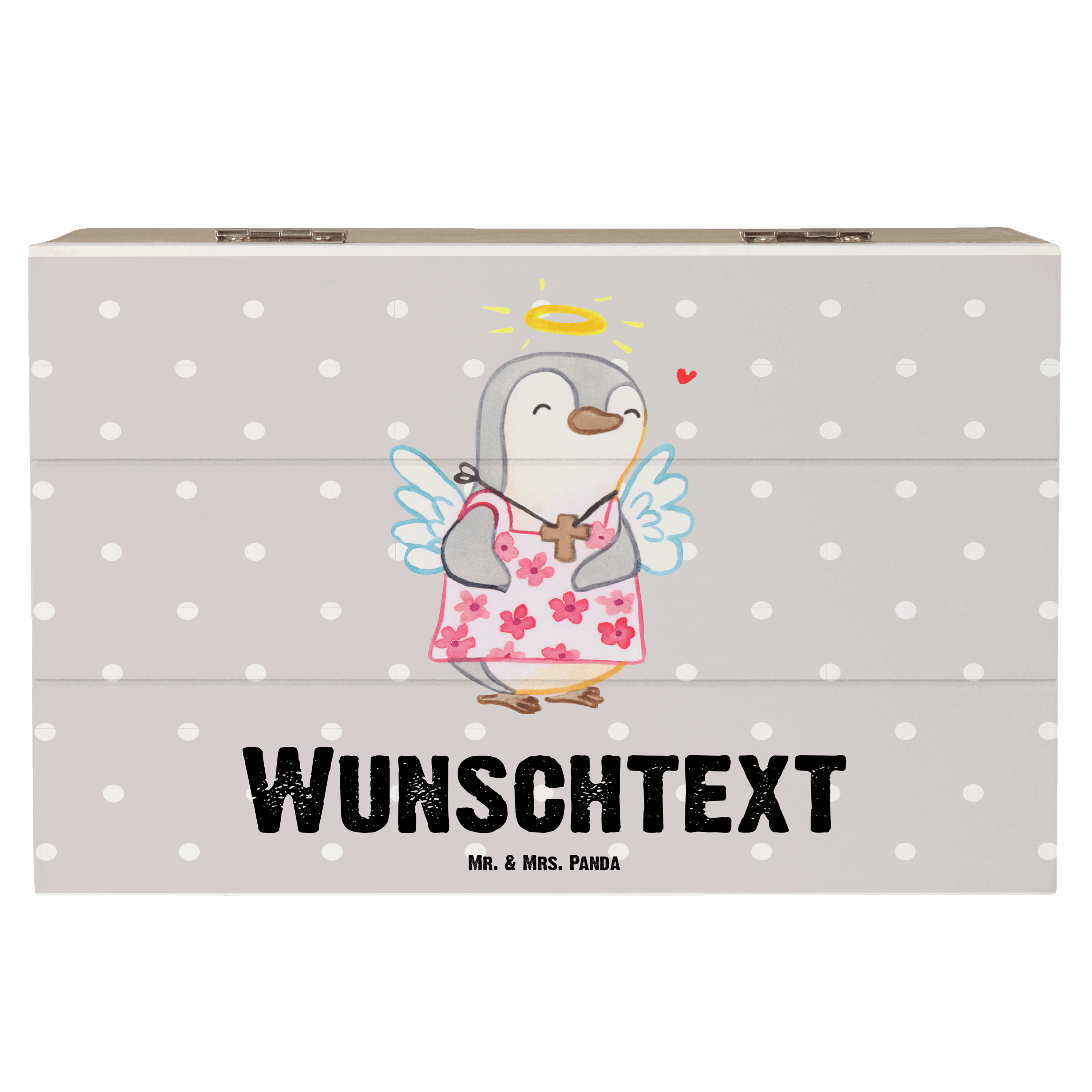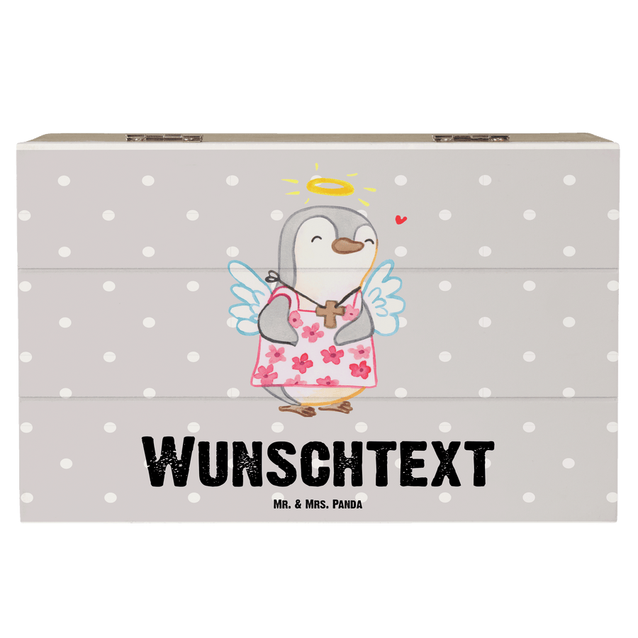 Personalisierte Holzkiste Pinguin Konfirmation - Grau Pastell - 19 x 12 cm