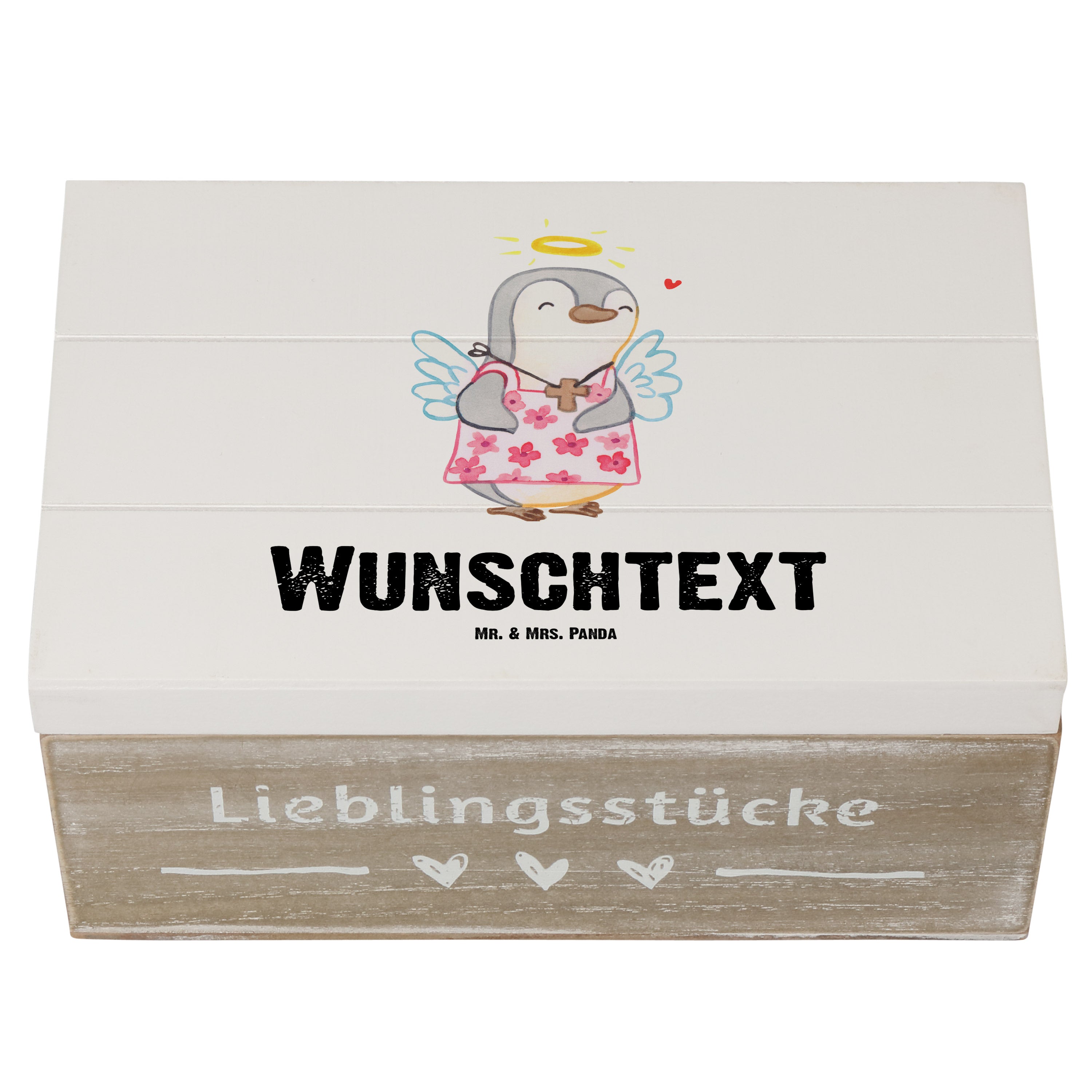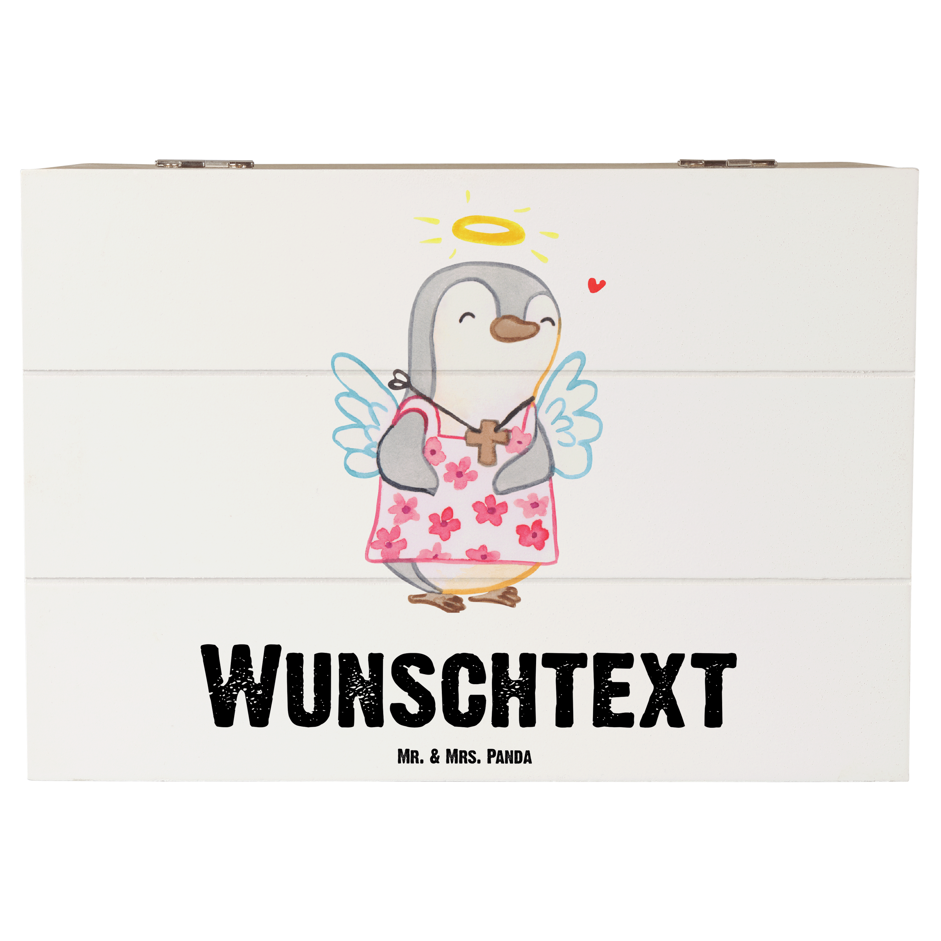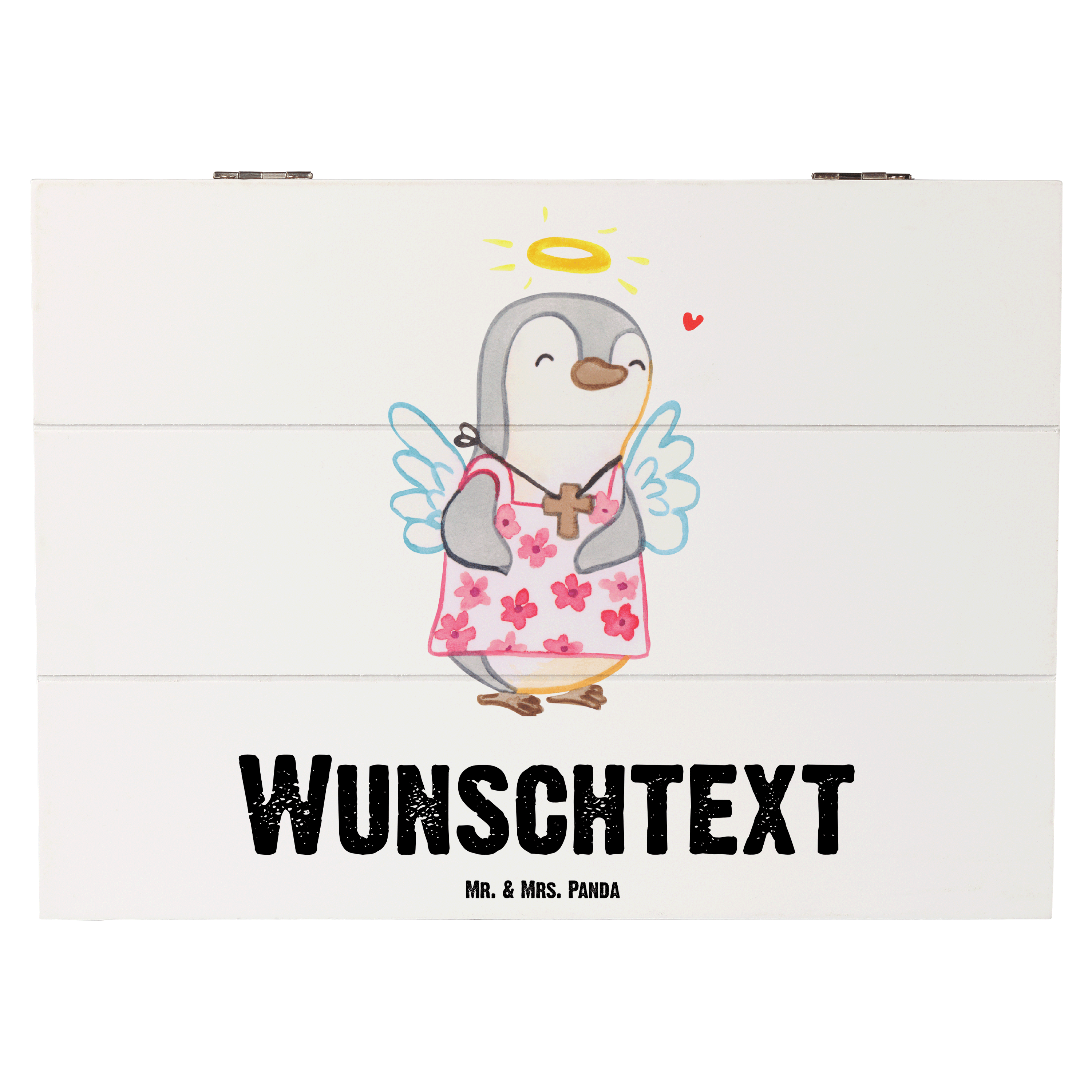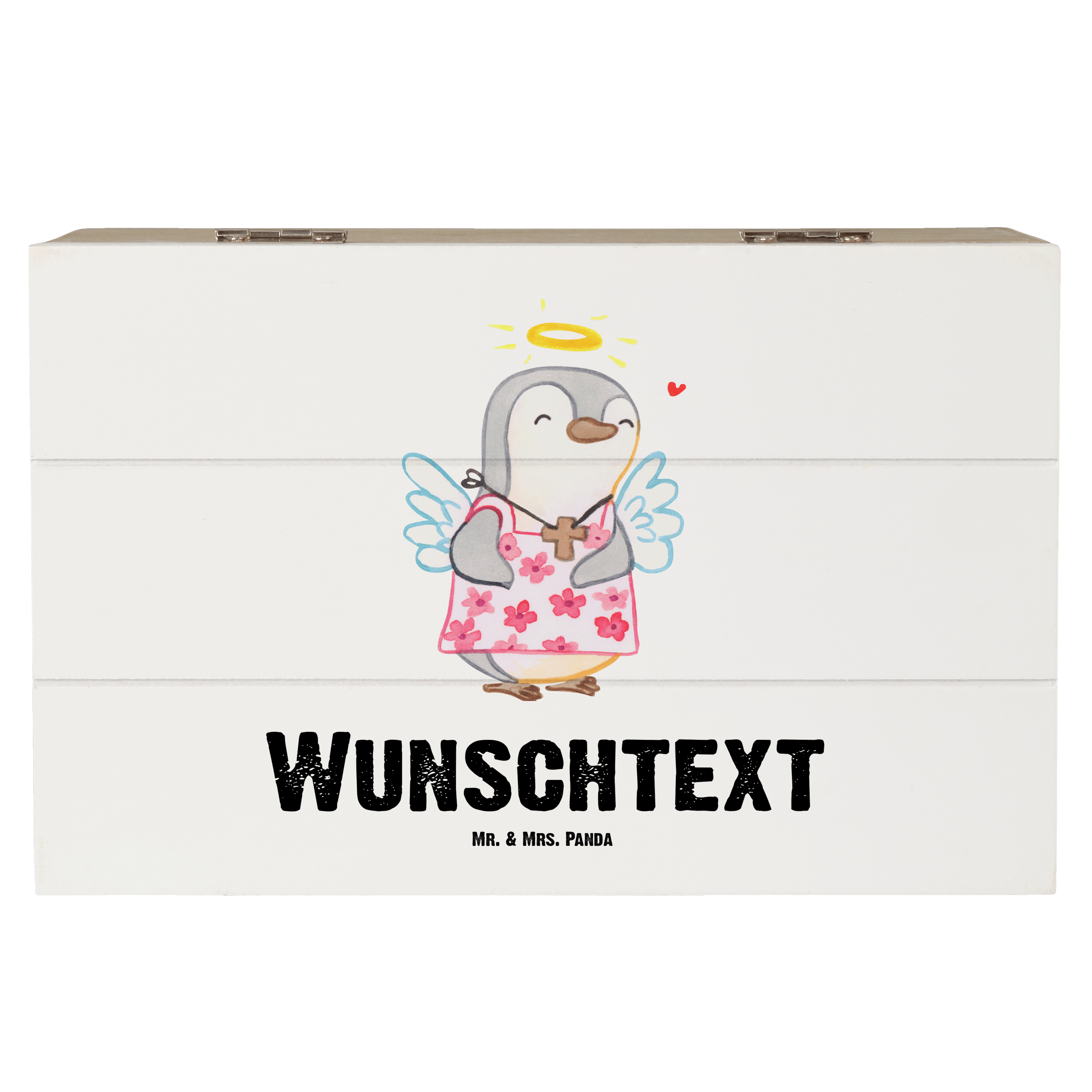 Personalisierte Holzkiste Pinguin Konfirmation - Grau Pastell - 19 x 12 cm