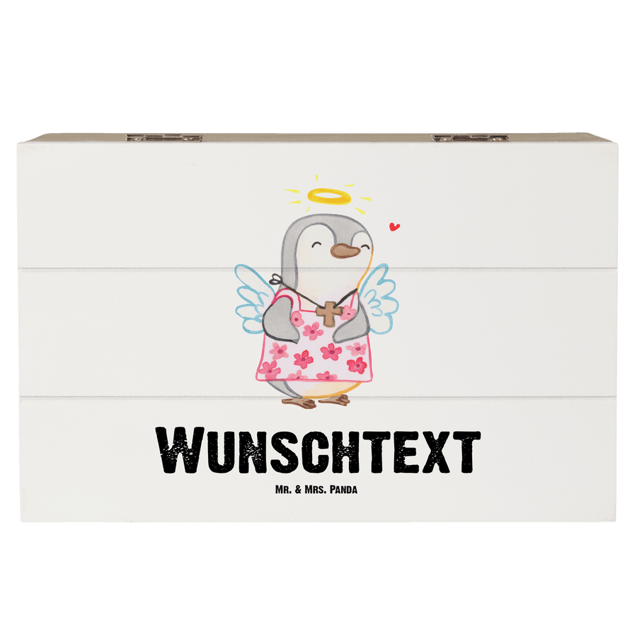 Personalisierte Holzkiste Pinguin Konfirmation - Weiß - 19 x 12 cm