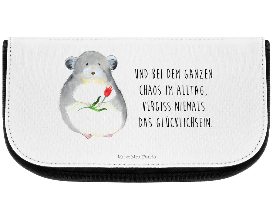 Kosmetiktasche Chinchilla mit Blume - mit Spruch - Weiß