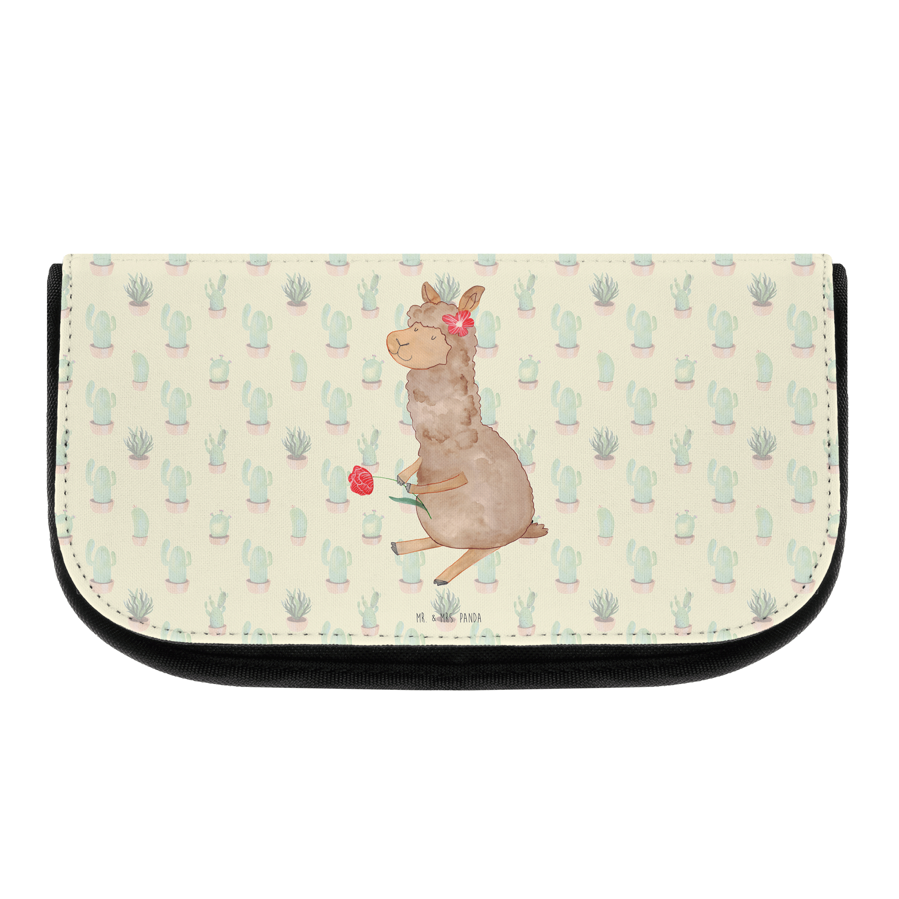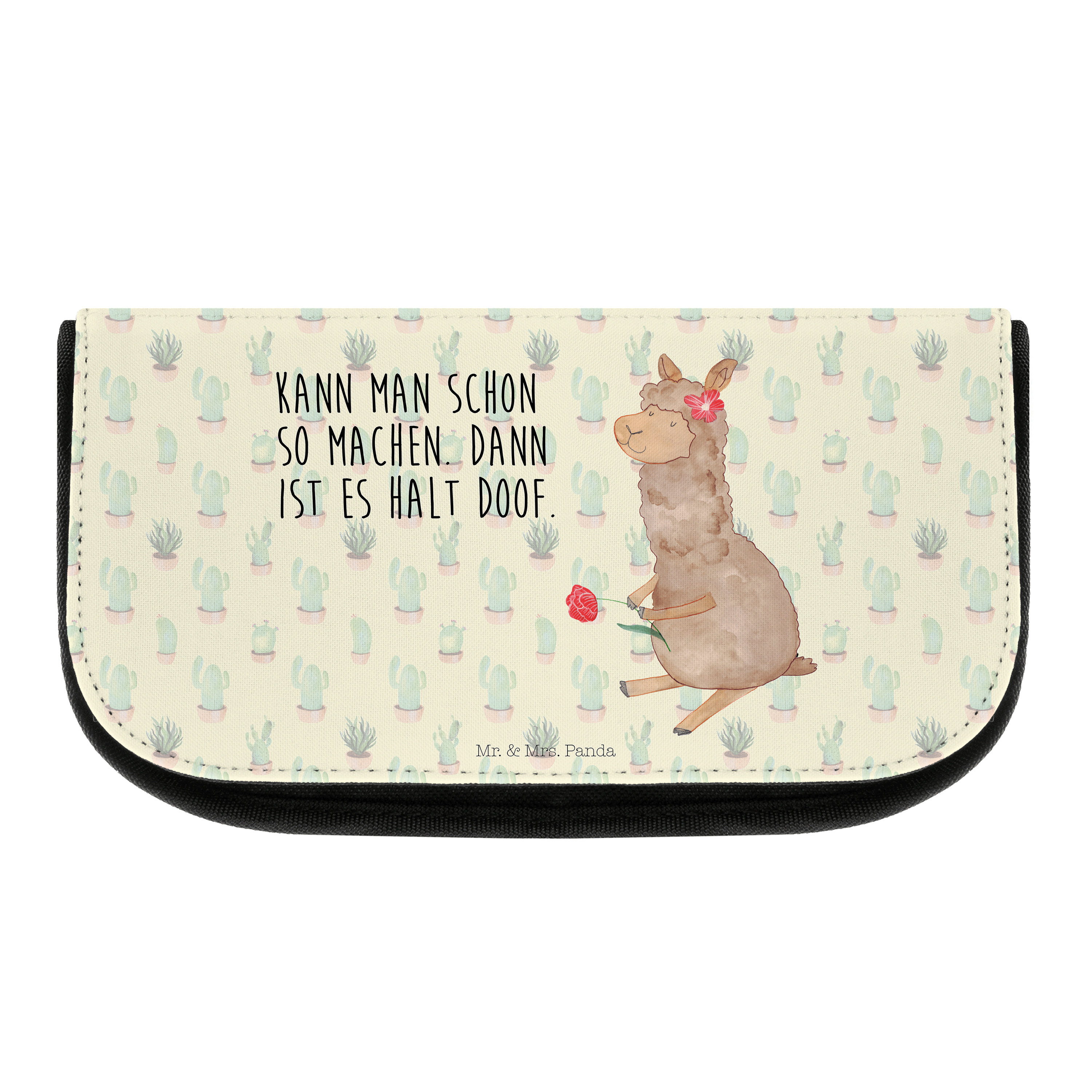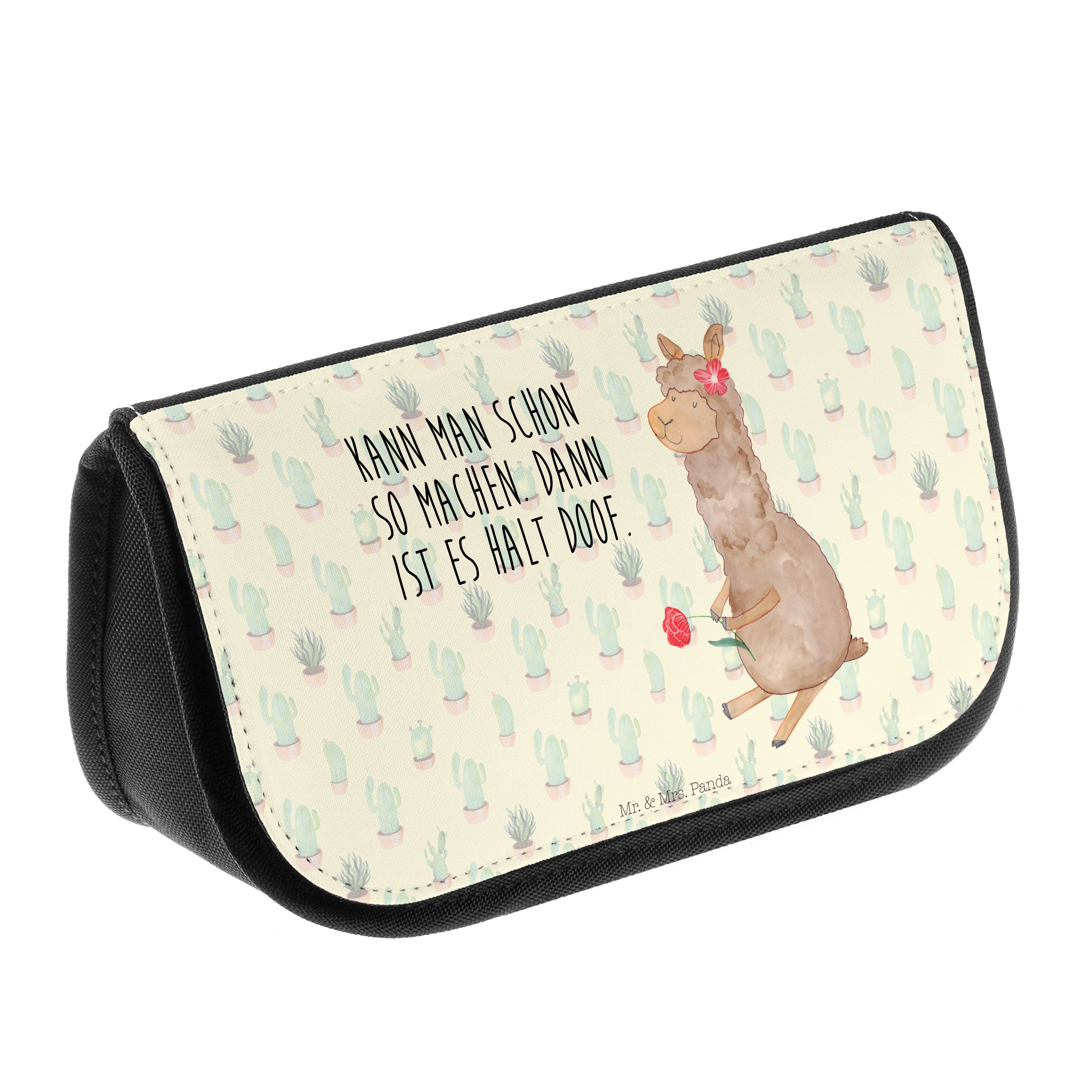 Kosmetiktasche Alpaka Blume - mit Spruch - Kaktus Grün
