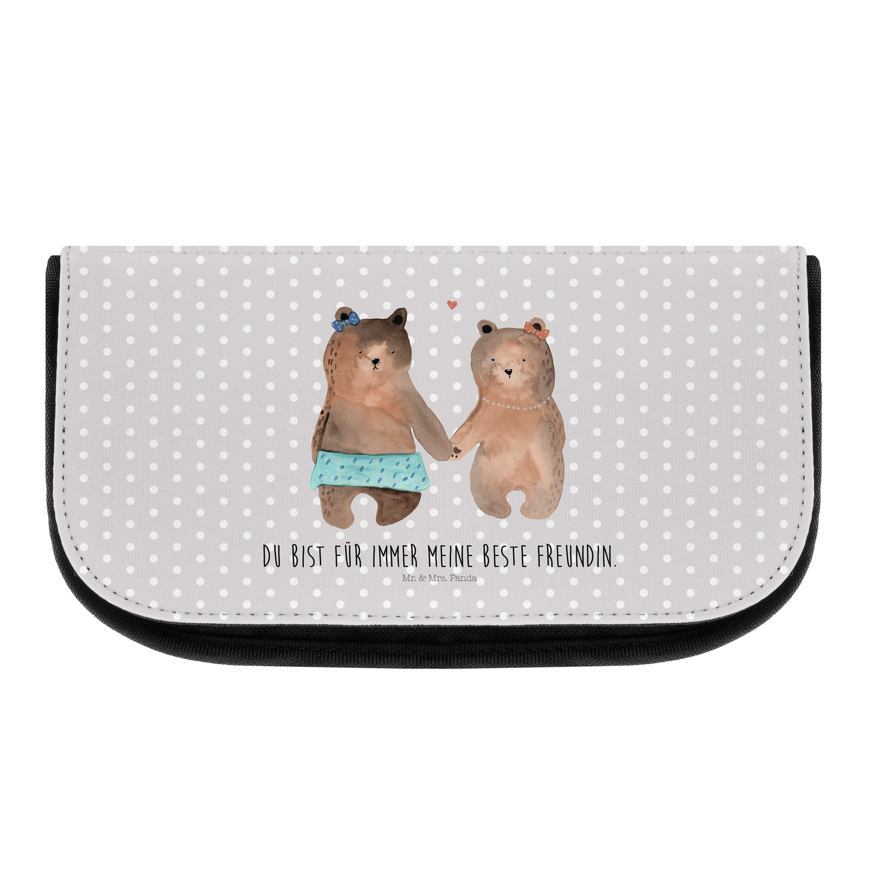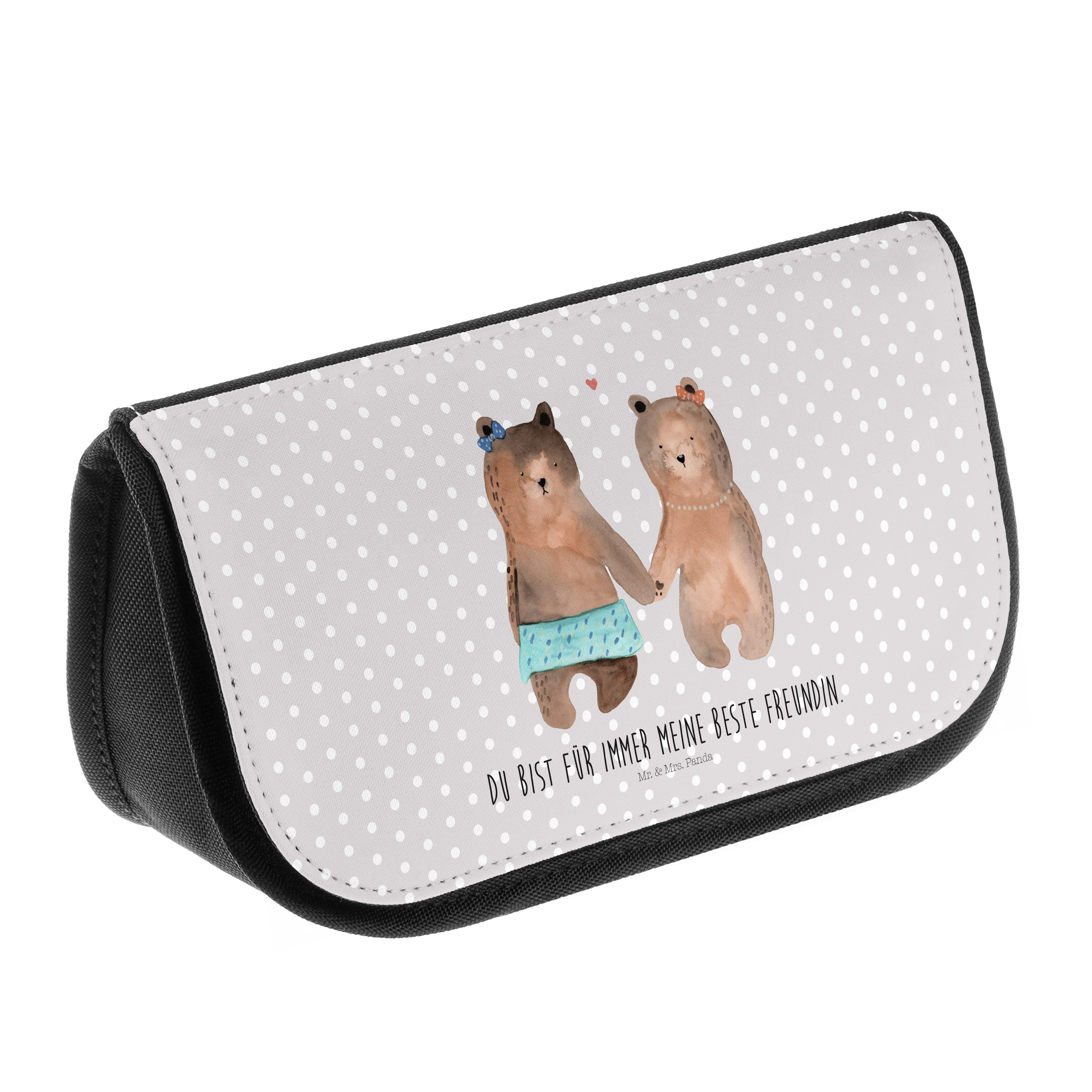 Kosmetiktasche Bär Freundin - mit Spruch - Grau Pastell
