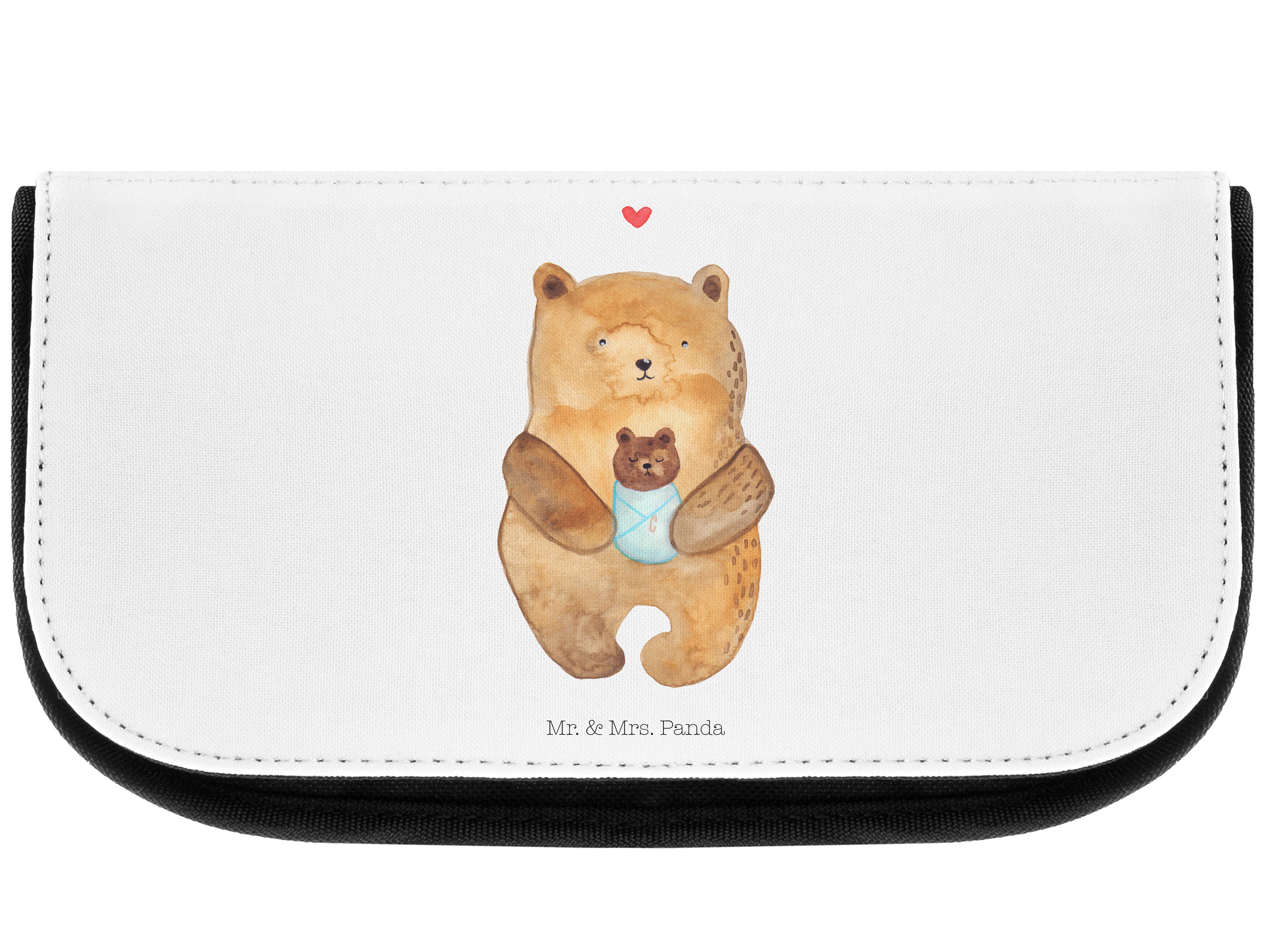 Kosmetiktasche Bär mit Baby - mit Spruch - Grau Pastell