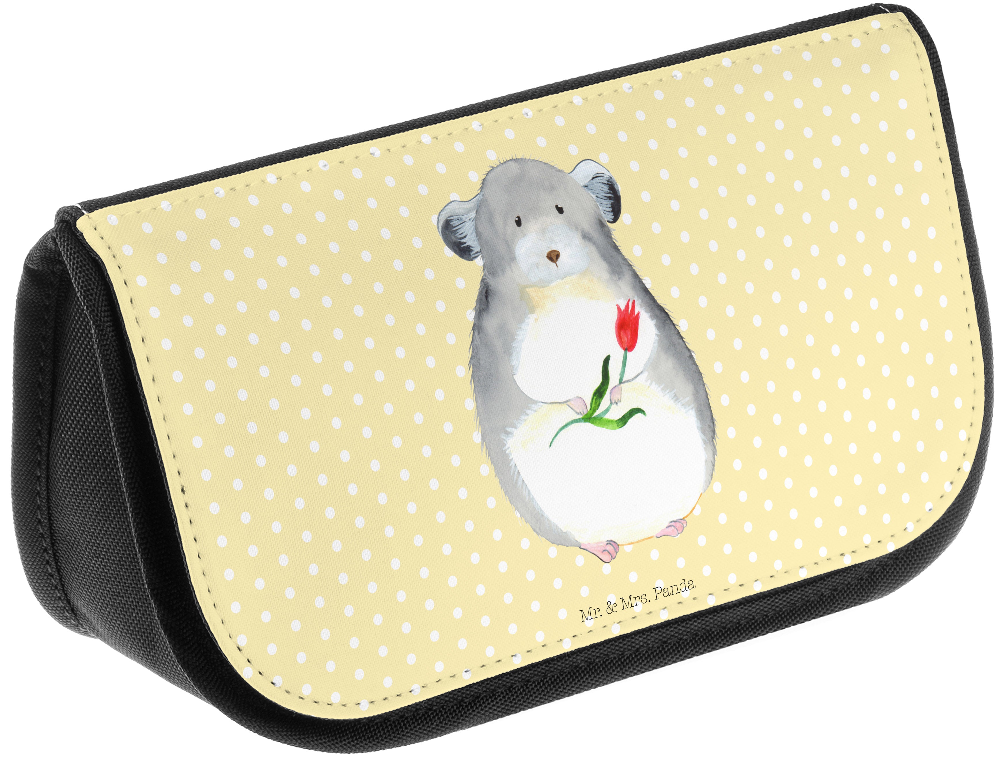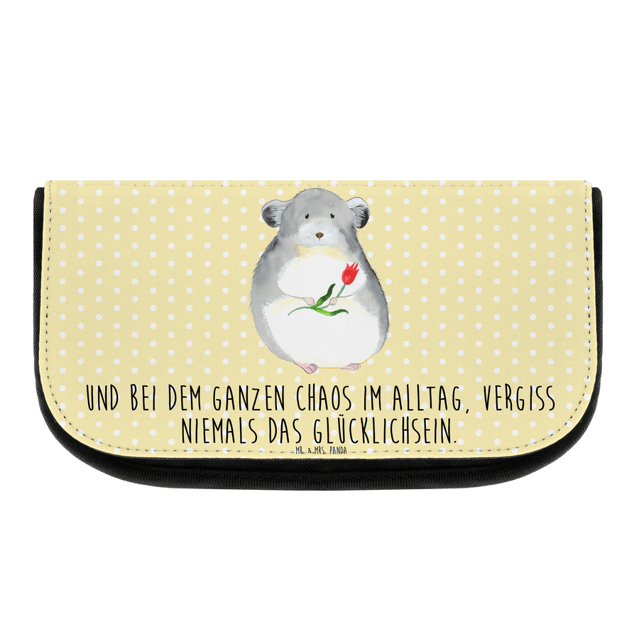 Kosmetiktasche Chinchilla mit Blume - mit Spruch - Gelb Pastell