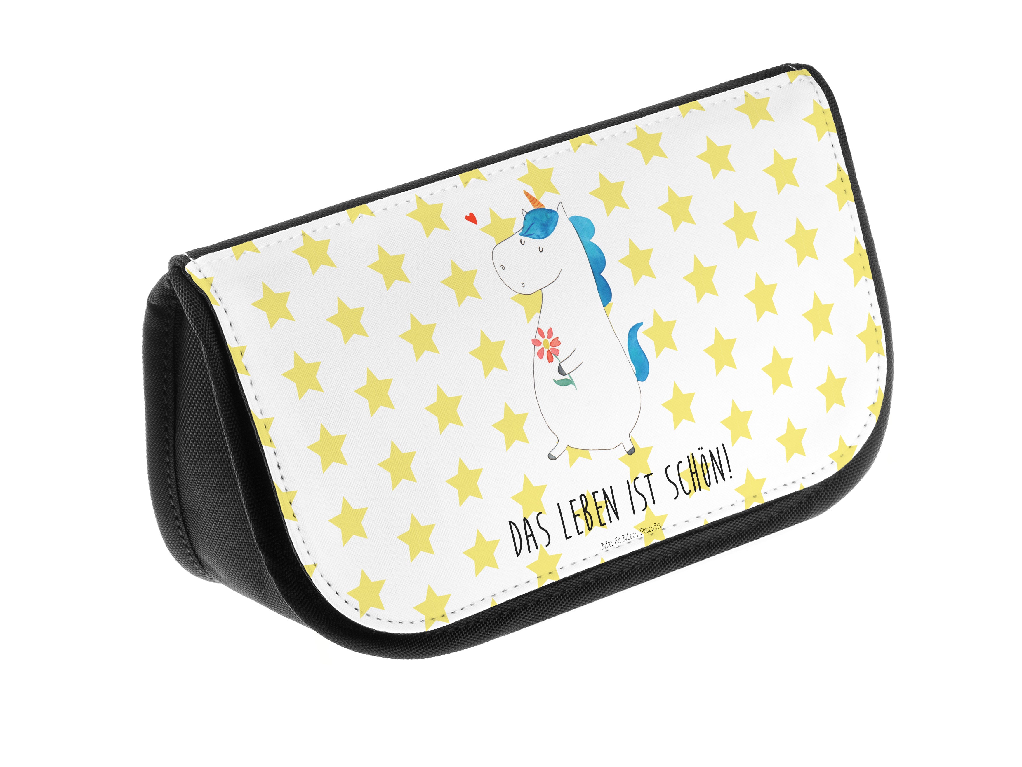 Diese bezaubernde Kosmetiktasche von Mr. & Mrs. Panda verfügt über getrennte Fächer, die für Ordnung sorgen und über einen Reißverschlussfach an der Vorderseite, der dafür sorgt, dass nicht rausfällt. Sie ist strapazierfähig, schmutzabweisend und abwaschbar. Am liebsten wird sie liebevoll mit einem feuchten Tuch gereinigt 😉. Die Frontseite ist mit einem wunderschönen handgezeichneten Motiven bedruckt, dass dir jeden Morgen gute Laune machen wird.