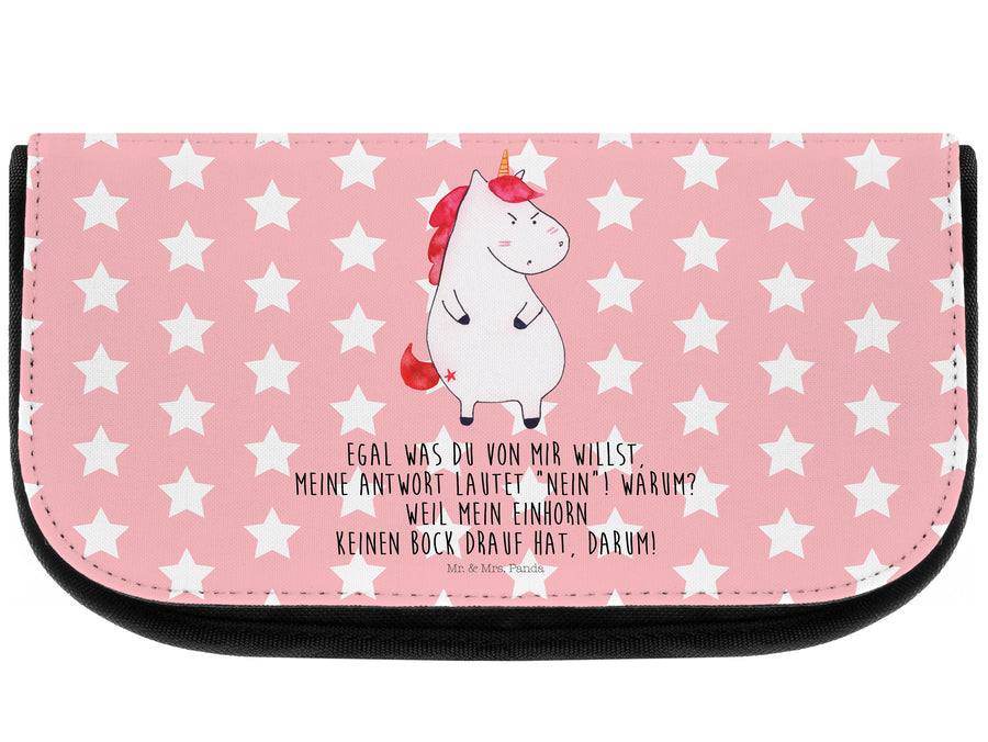 Kosmetiktasche Einhorn wütend - mit Spruch - Rot Pastell