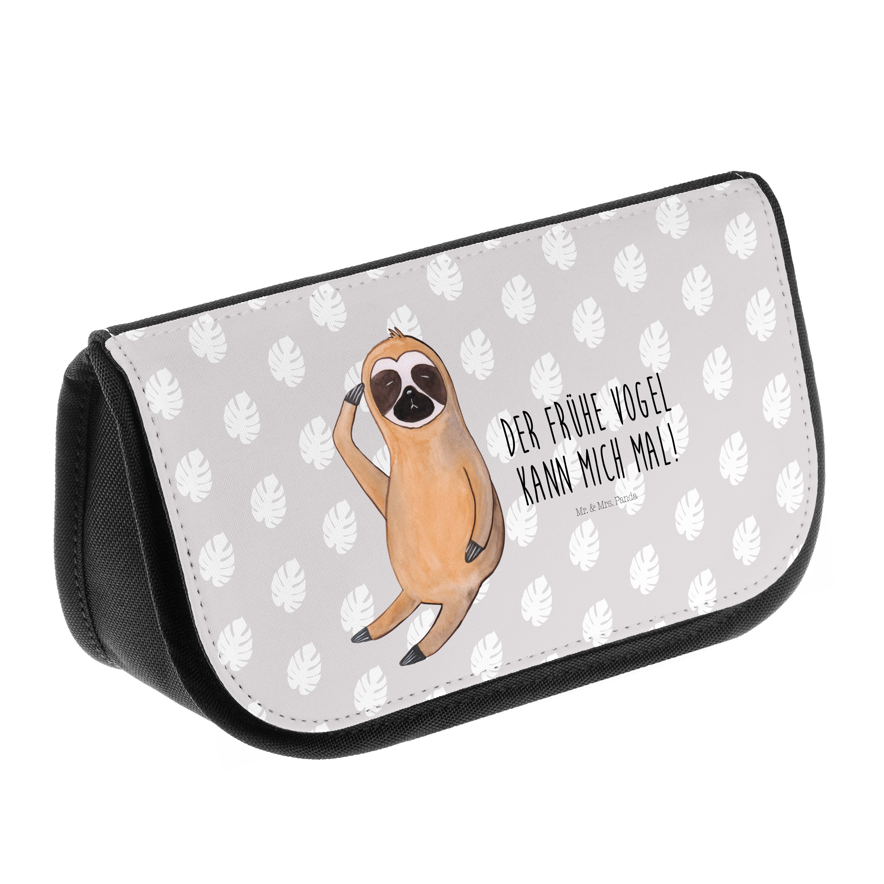 Kosmetiktasche Faultier Vogel zeigen - mit Spruch - Grau Pastell