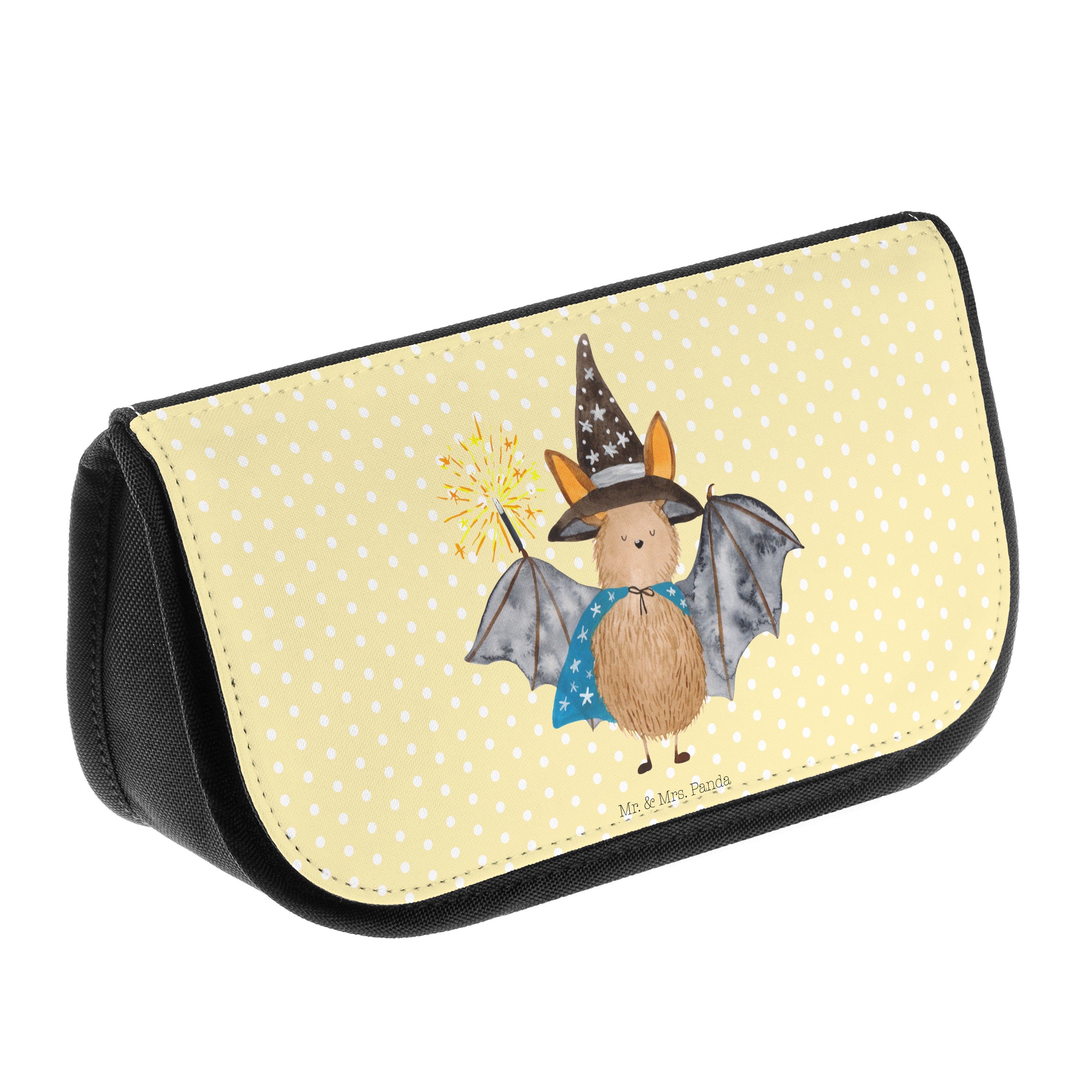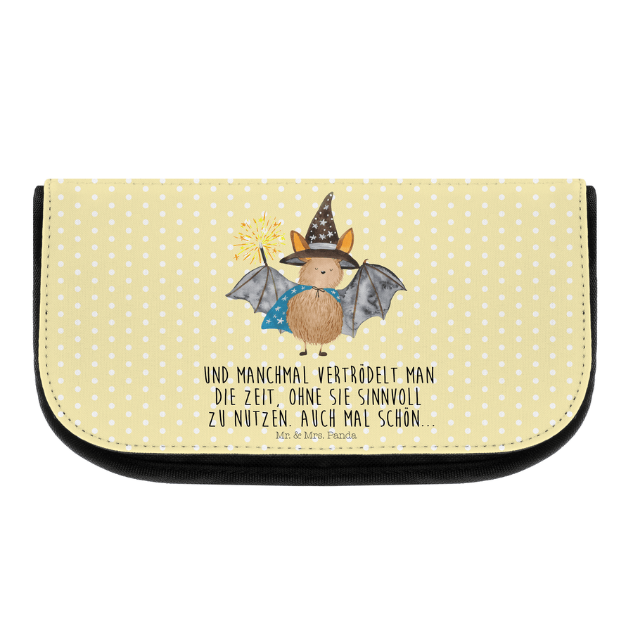 Kosmetiktasche Fledermaus Zauberer - mit Spruch - Gelb Pastell