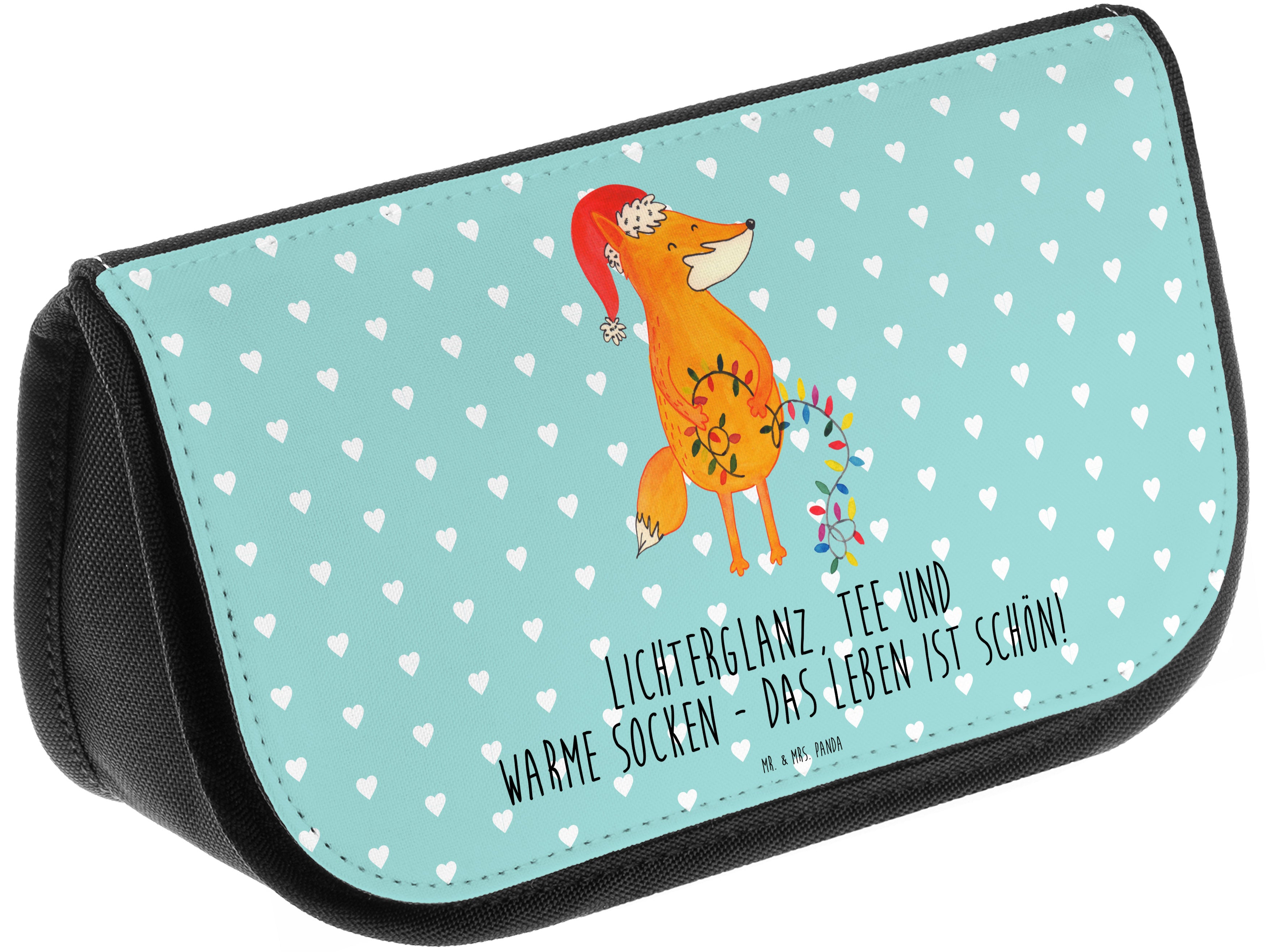 Kosmetiktasche Fuchs Weihnachten - mit Spruch - Türkis Pastell