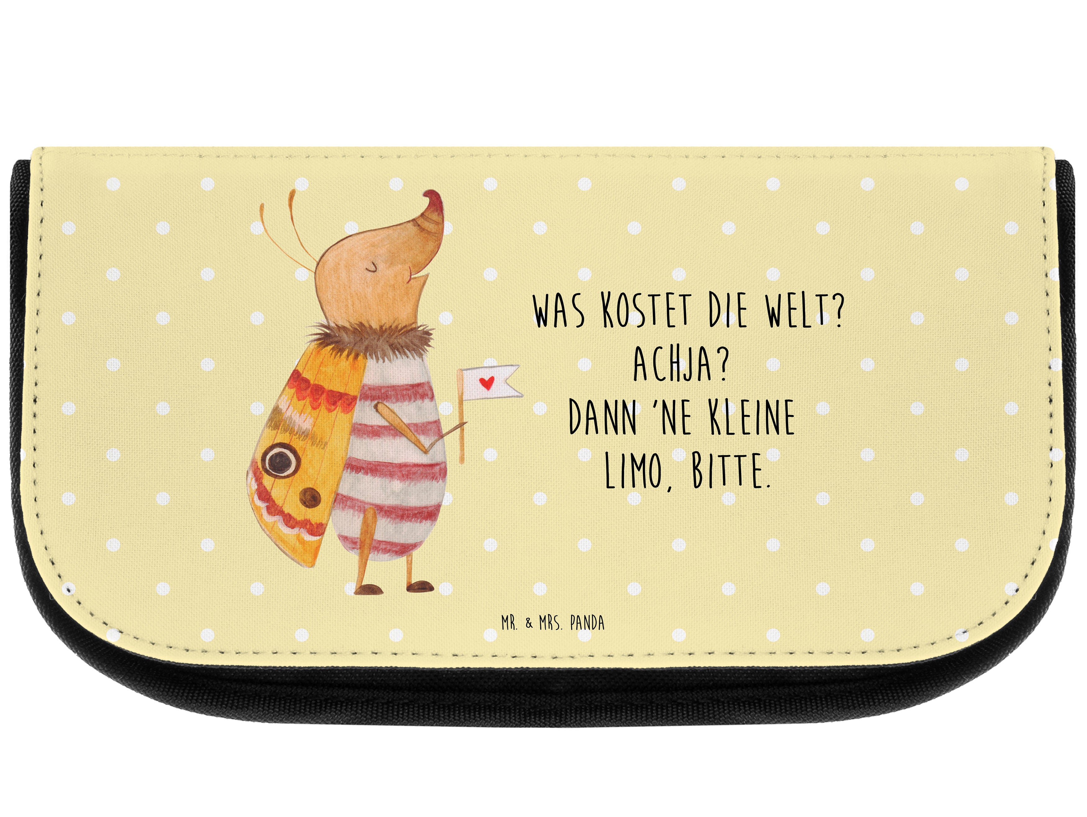 Kosmetiktasche Nachtfalter mit Fähnchen - mit Spruch - Gelb Pastell