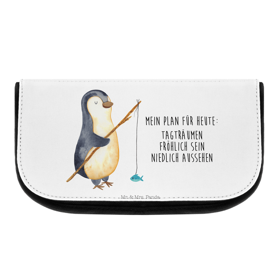 Kosmetiktasche Pinguin Angler - mit Spruch - Weiß