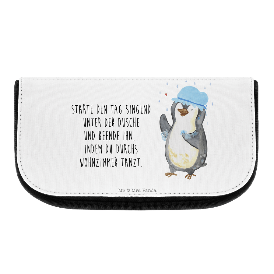 Kosmetiktasche Pinguin duscht - mit Spruch - Weiß
