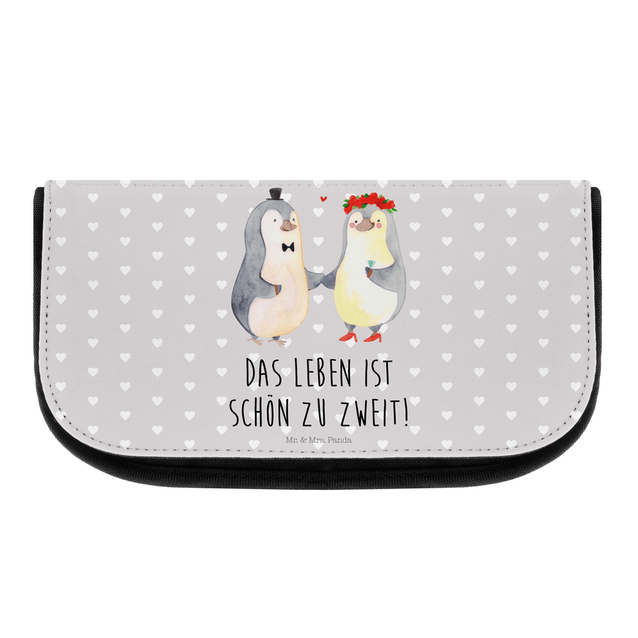Kosmetiktasche Pinguin Heirat - mit Spruch - Grau Pastell
