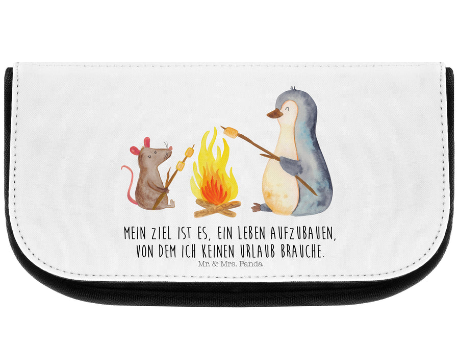 Kosmetiktasche Pinguin Lagerfeuer - mit Spruch - Weiß