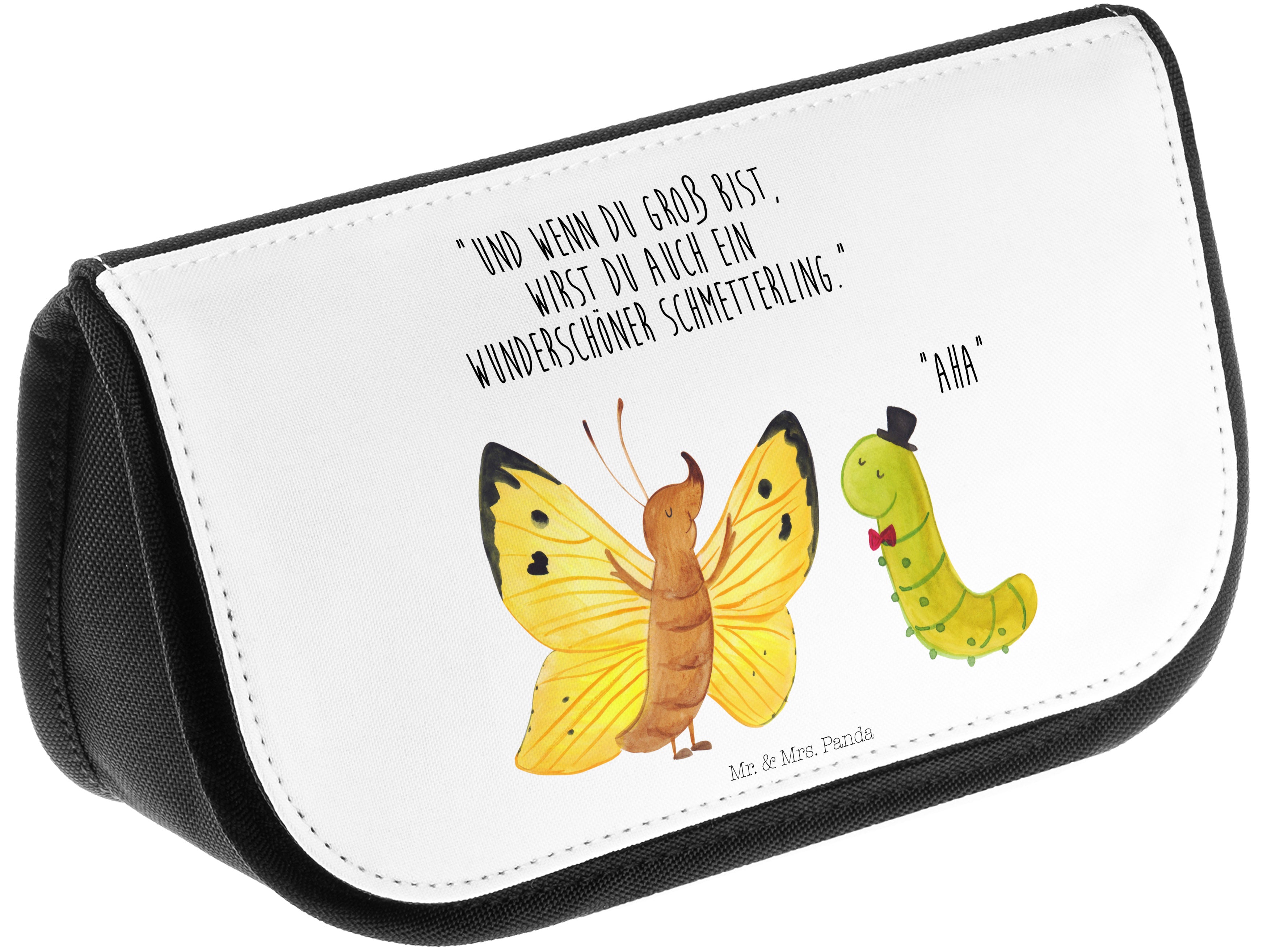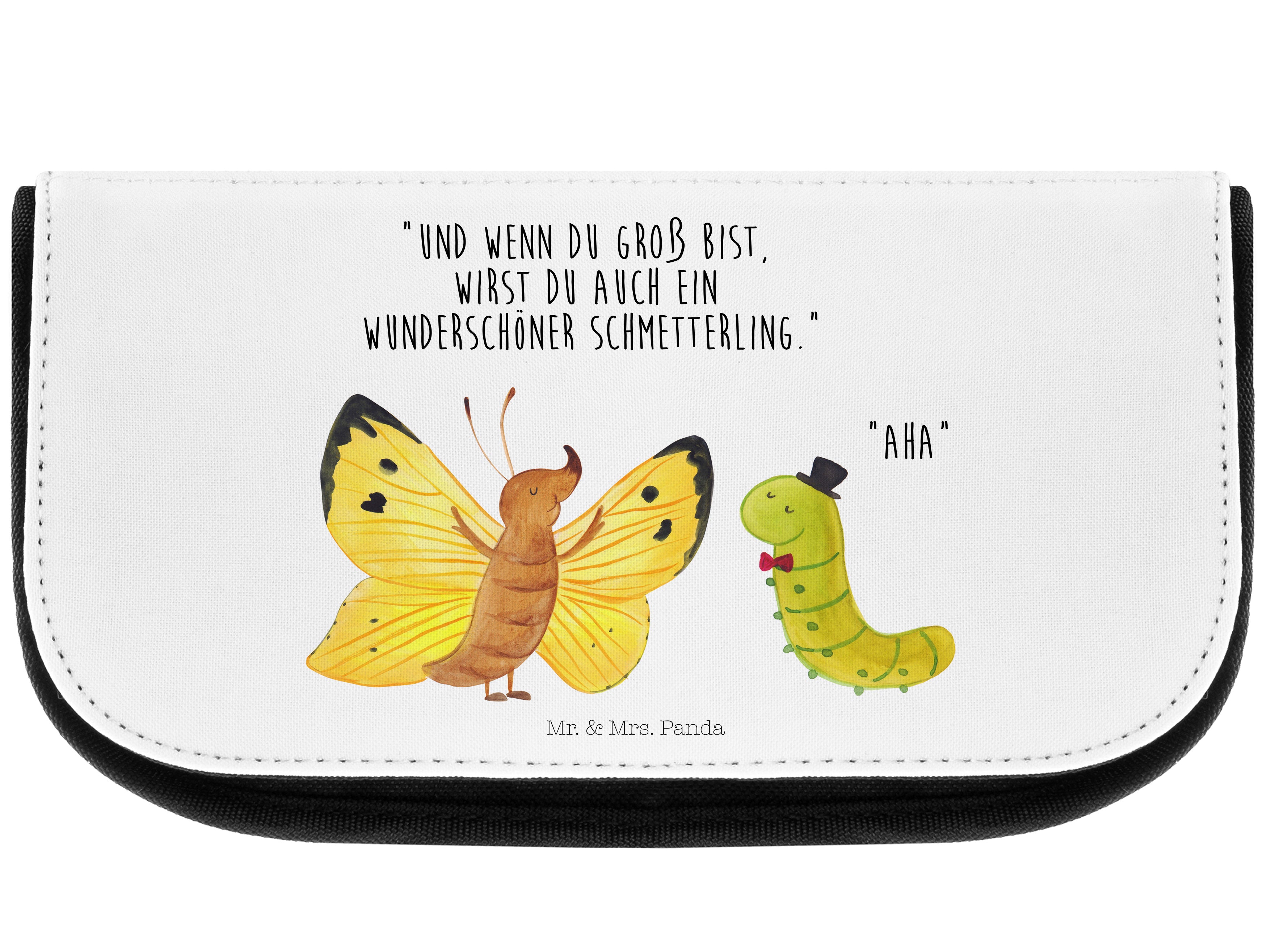 Kosmetiktasche Raupe & Schmetterling - mit Spruch - Weiß
