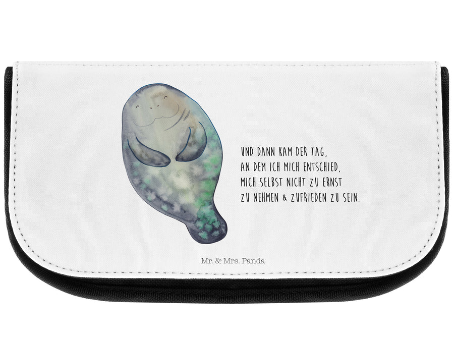 Kosmetiktasche Seekuh happy - mit Spruch - Weiß