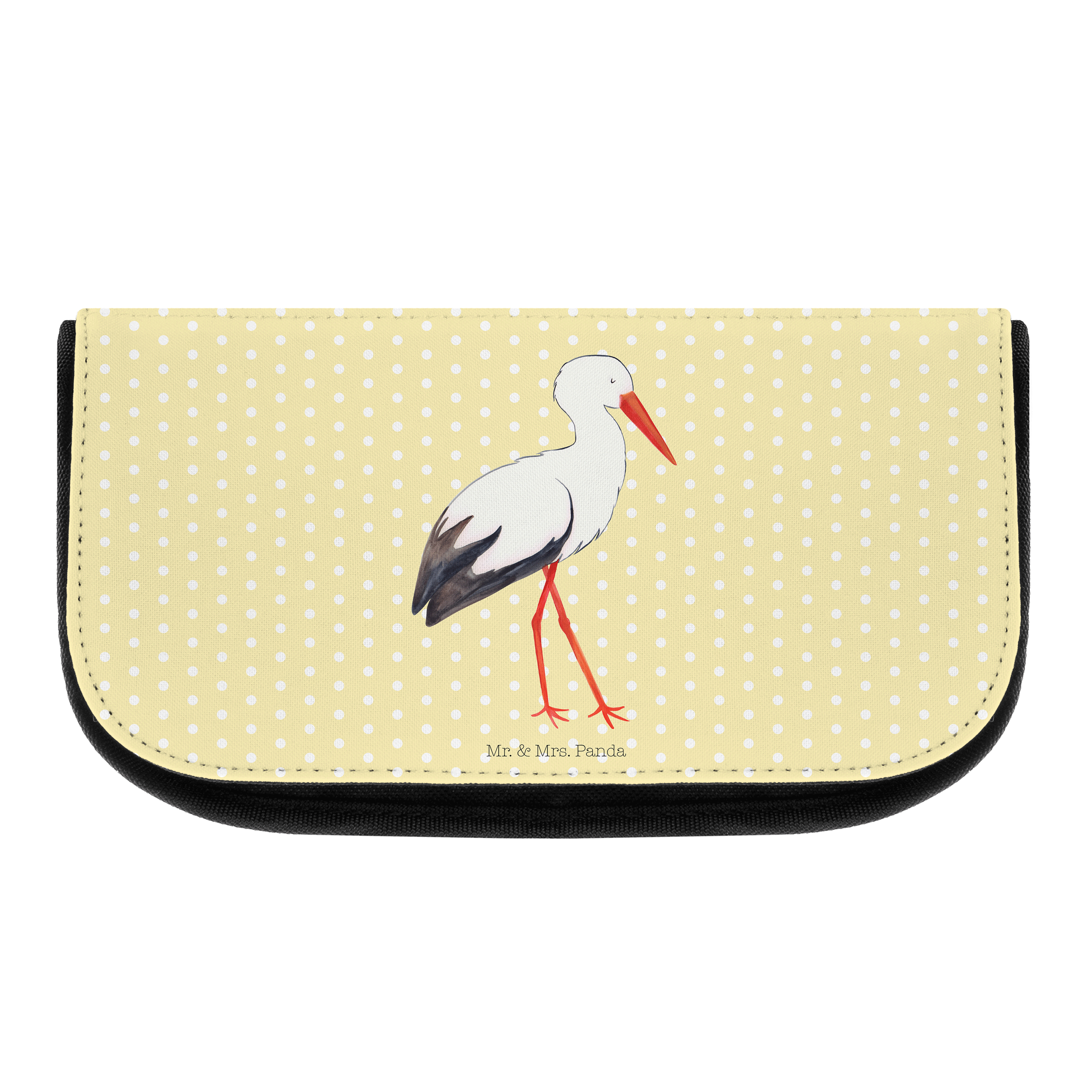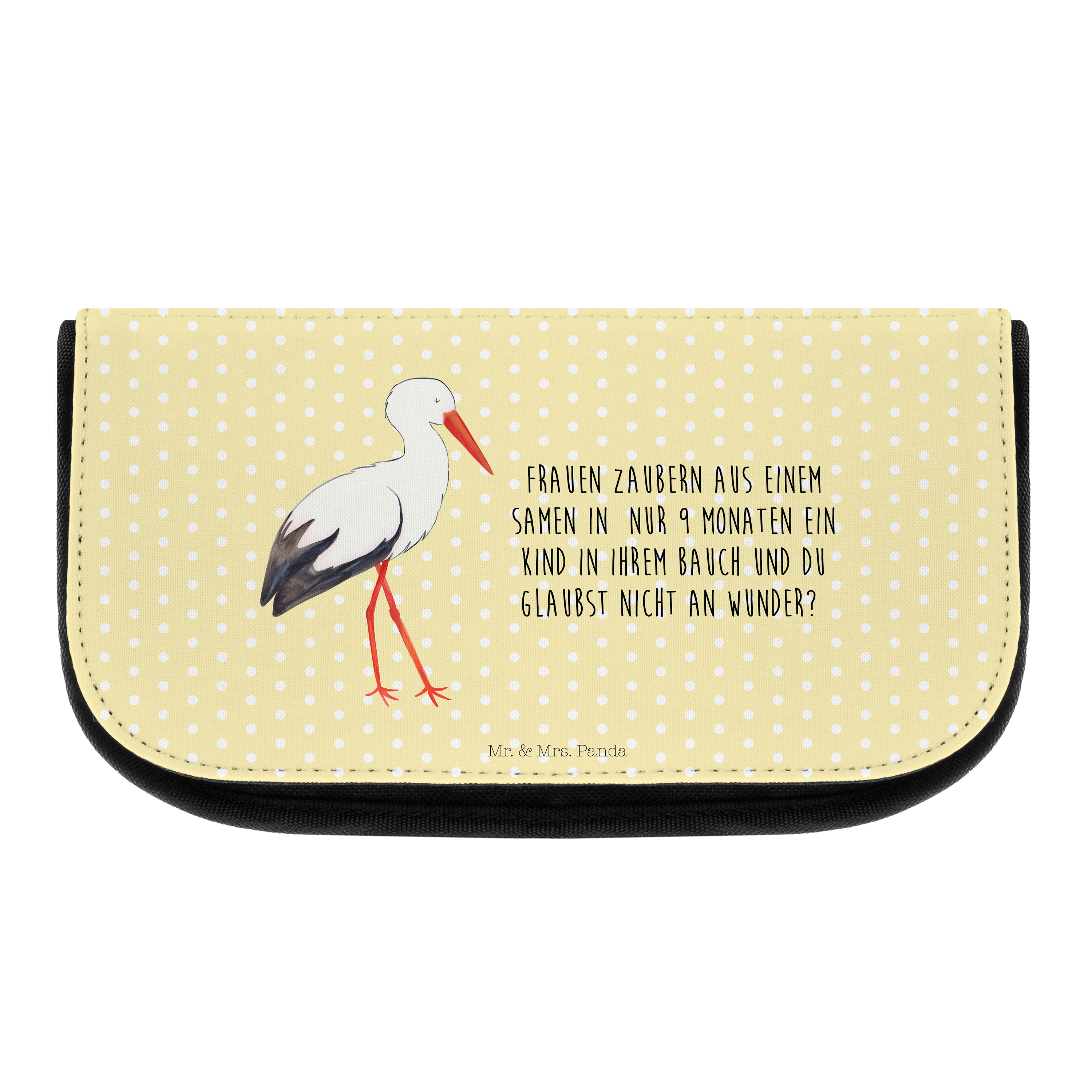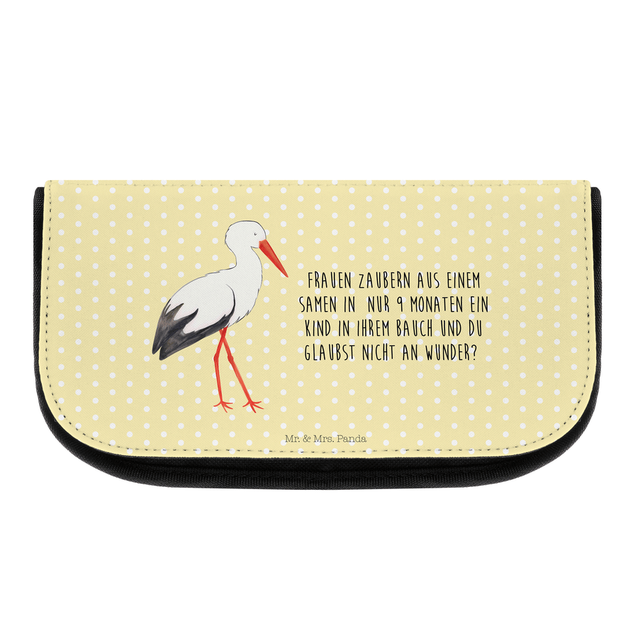 Kosmetiktasche Storch - mit Spruch - Gelb Pastell