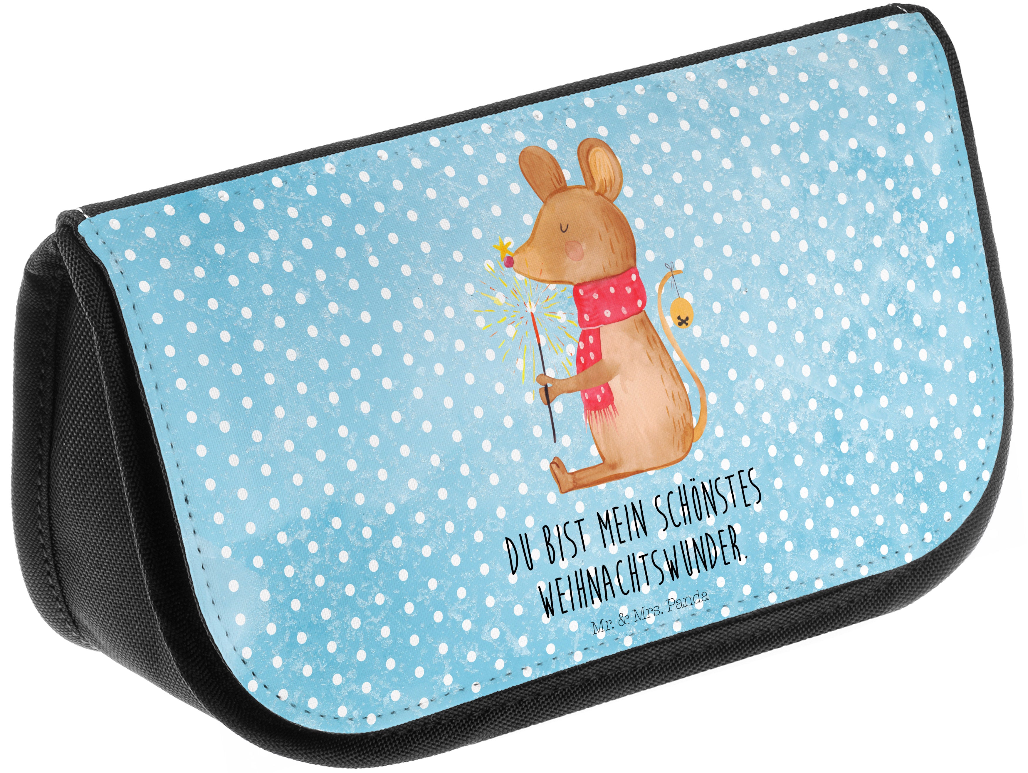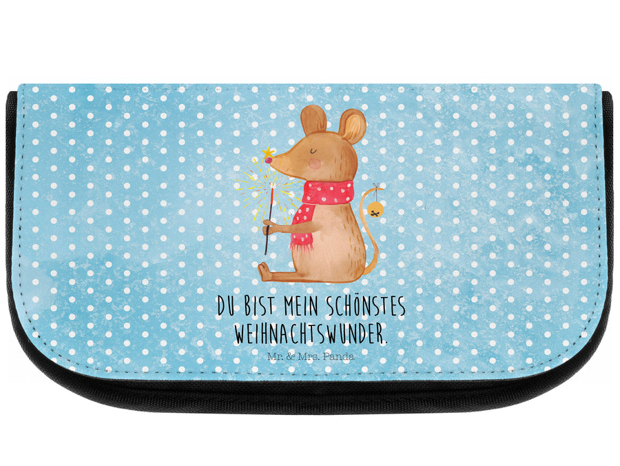 Kosmetiktasche Weihnachtsmaus - mit Spruch - Eisblau