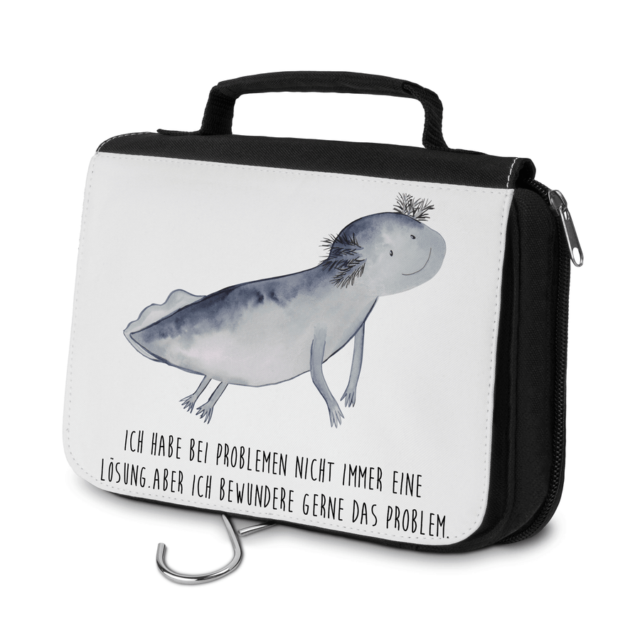 Kulturbeutel Axolotl schwimmt - mit Spruch - Weiß