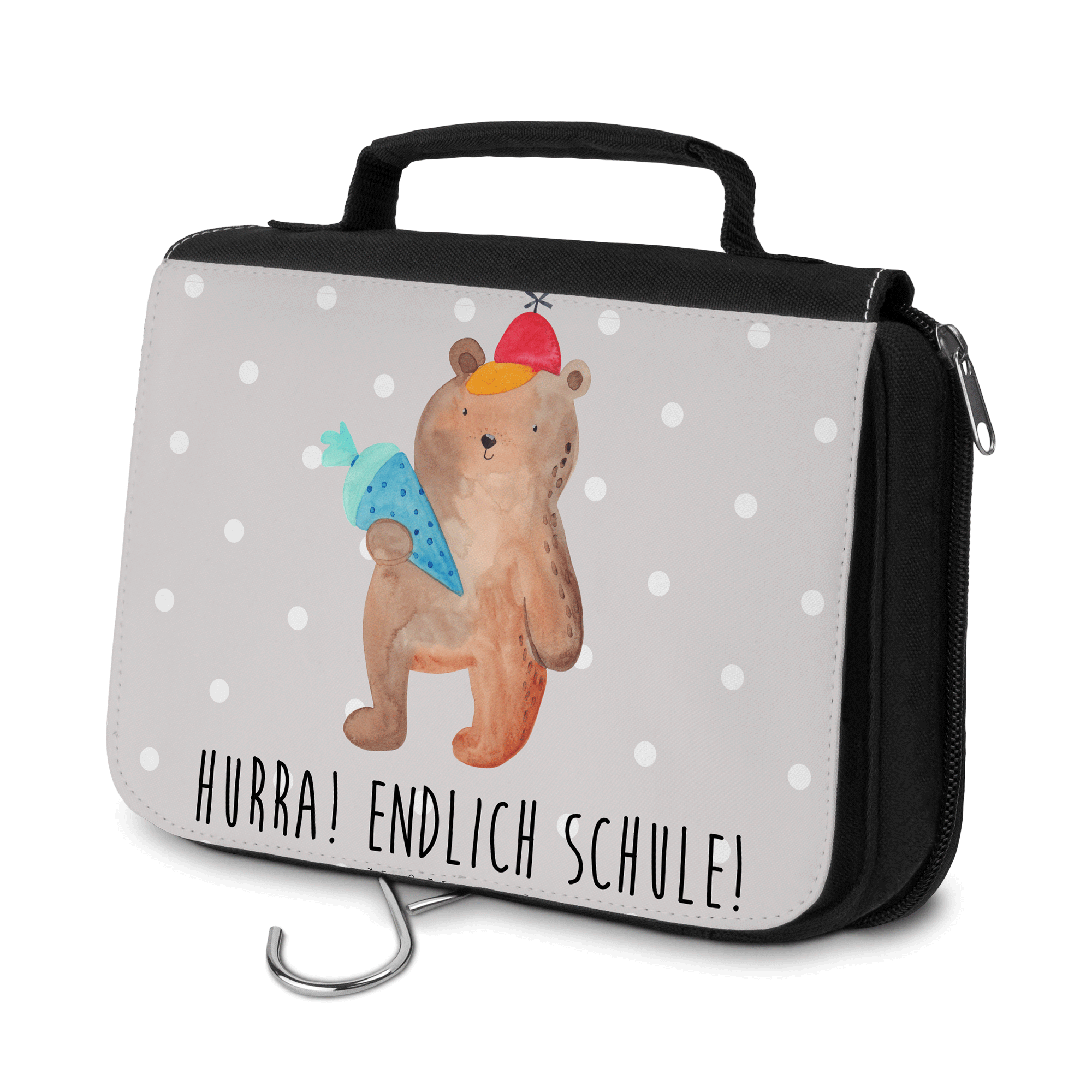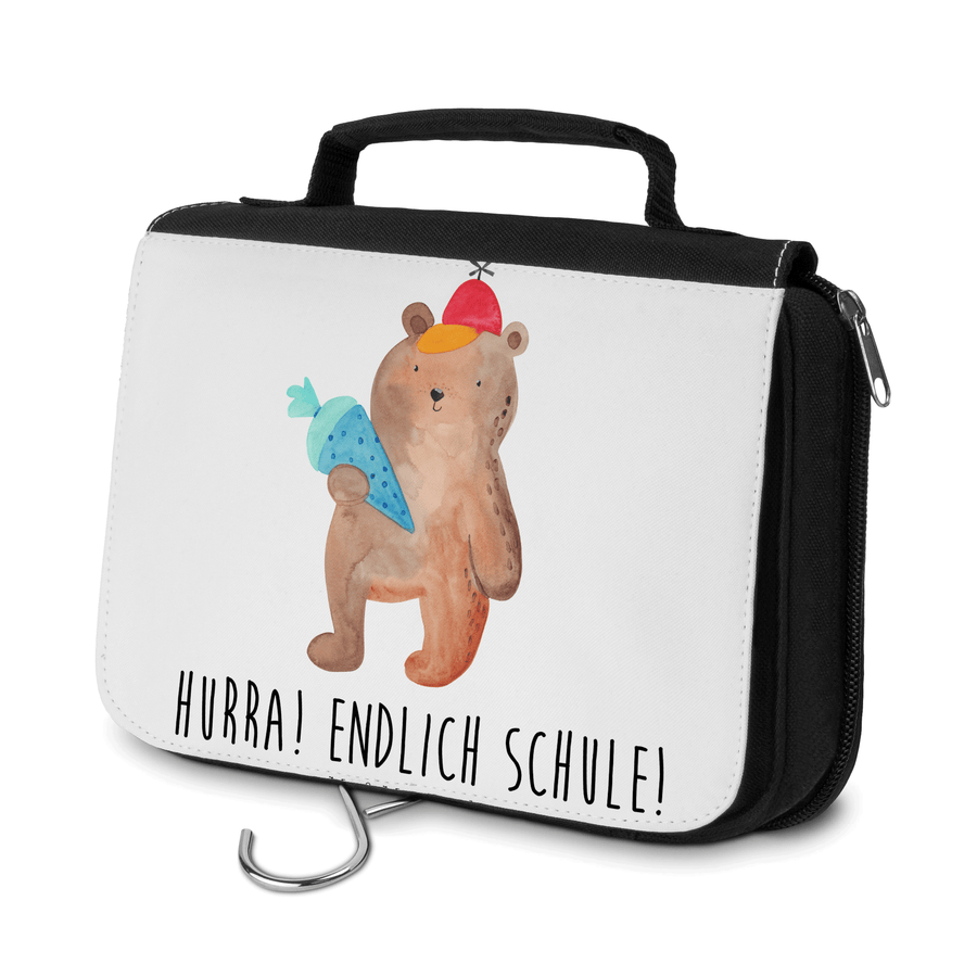 Kulturbeutel Bär mit Schultüte - mit Spruch - Weiß