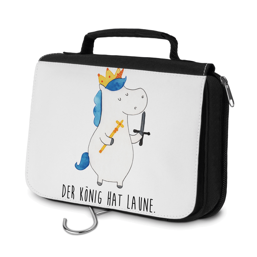 Kulturbeutel Einhorn König mit Schwert - mit Spruch - Weiß