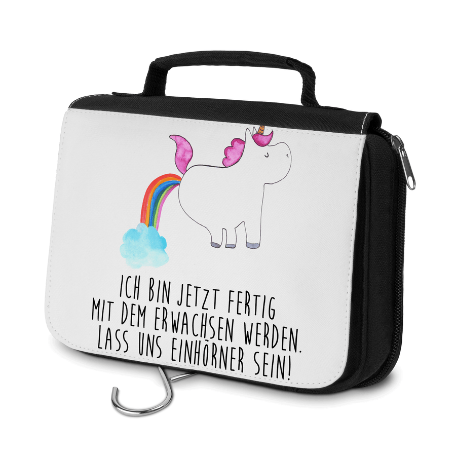 Kulturbeutel Einhorn Pupsend - mit Spruch - Weiß
