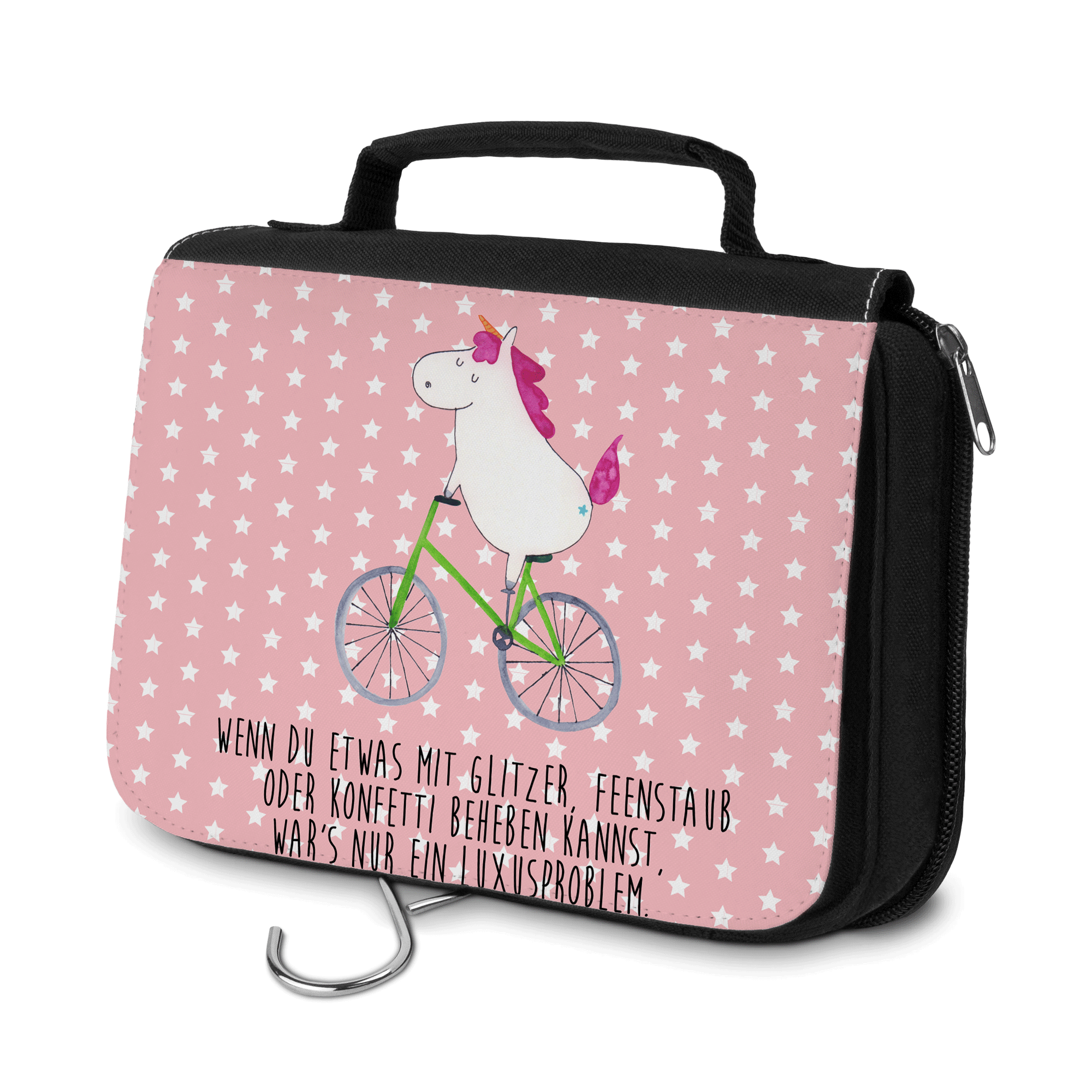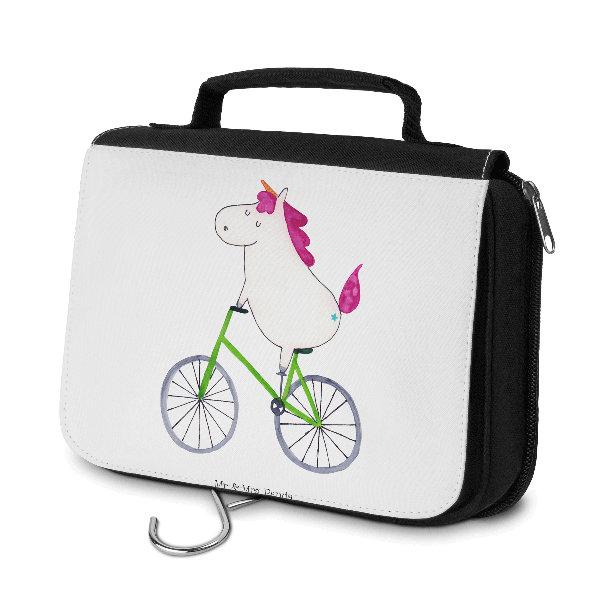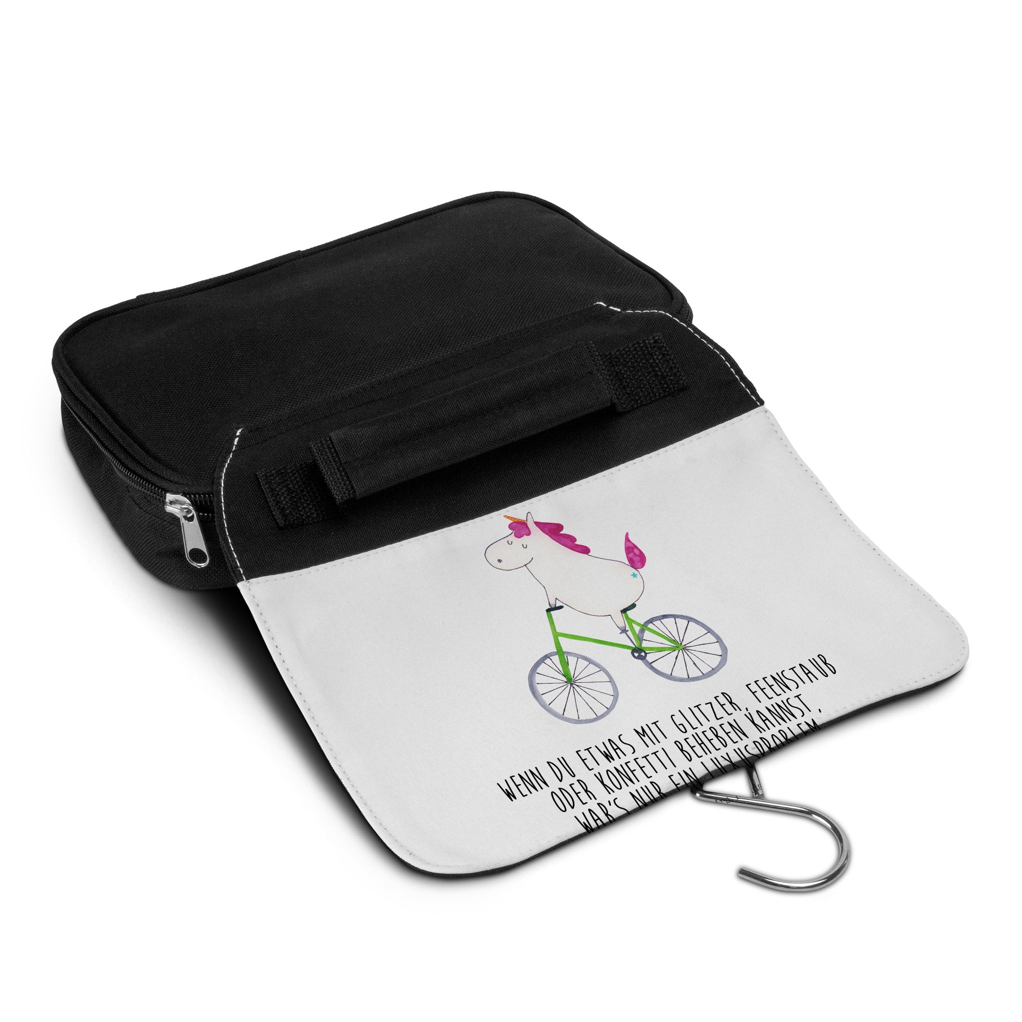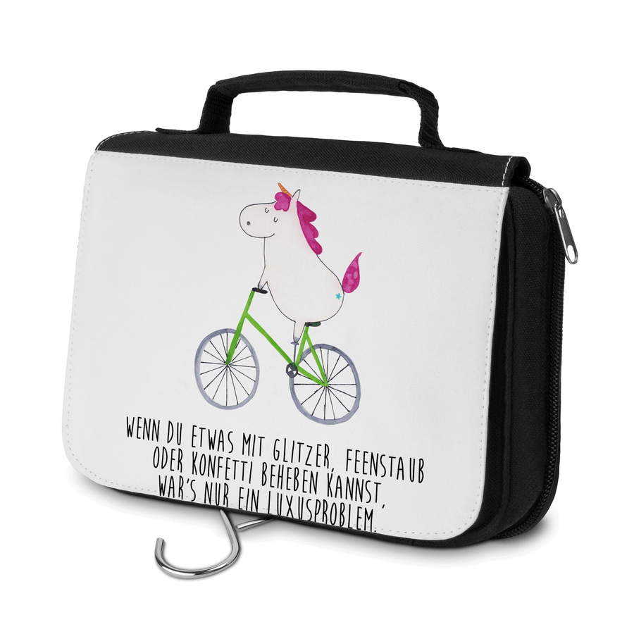 Kulturbeutel Einhorn Radfahrer - mit Spruch - Weiß