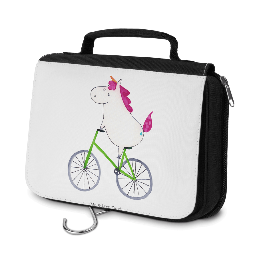 Kulturbeutel Einhorn Radfahrer - ohne Spruch - Weiß