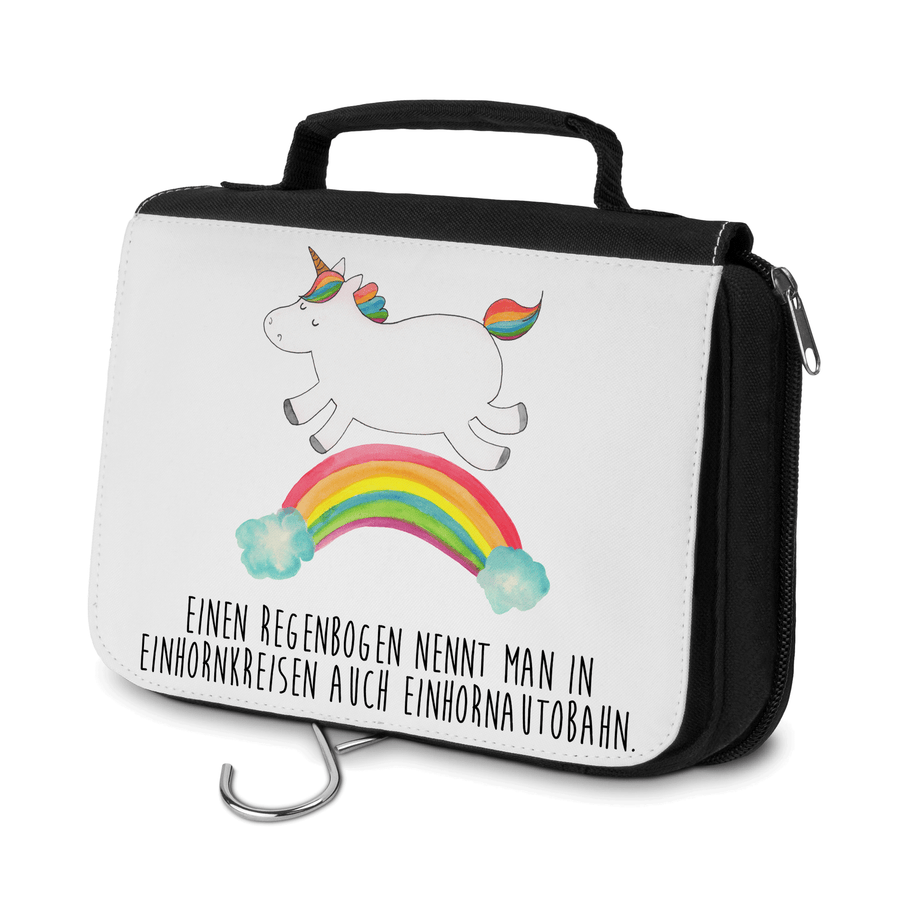 Kulturbeutel Einhorn Regenbogen - mit Spruch - Weiß