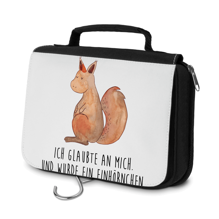 Kulturbeutel Einhörnchen Glaube - mit Spruch - Weiß
