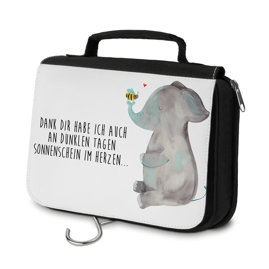 Kulturbeutel Elefant & Biene - mit Spruch - Weiß