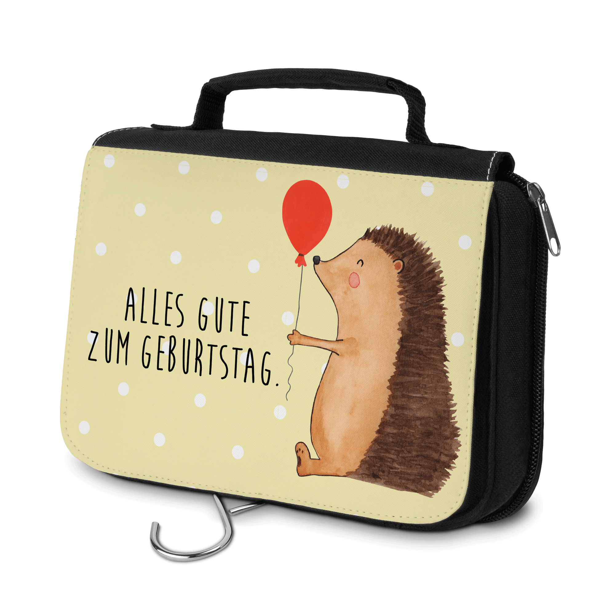 Kulturbeutel Igel mit Luftballon - mit Spruch - Gelb Pastell