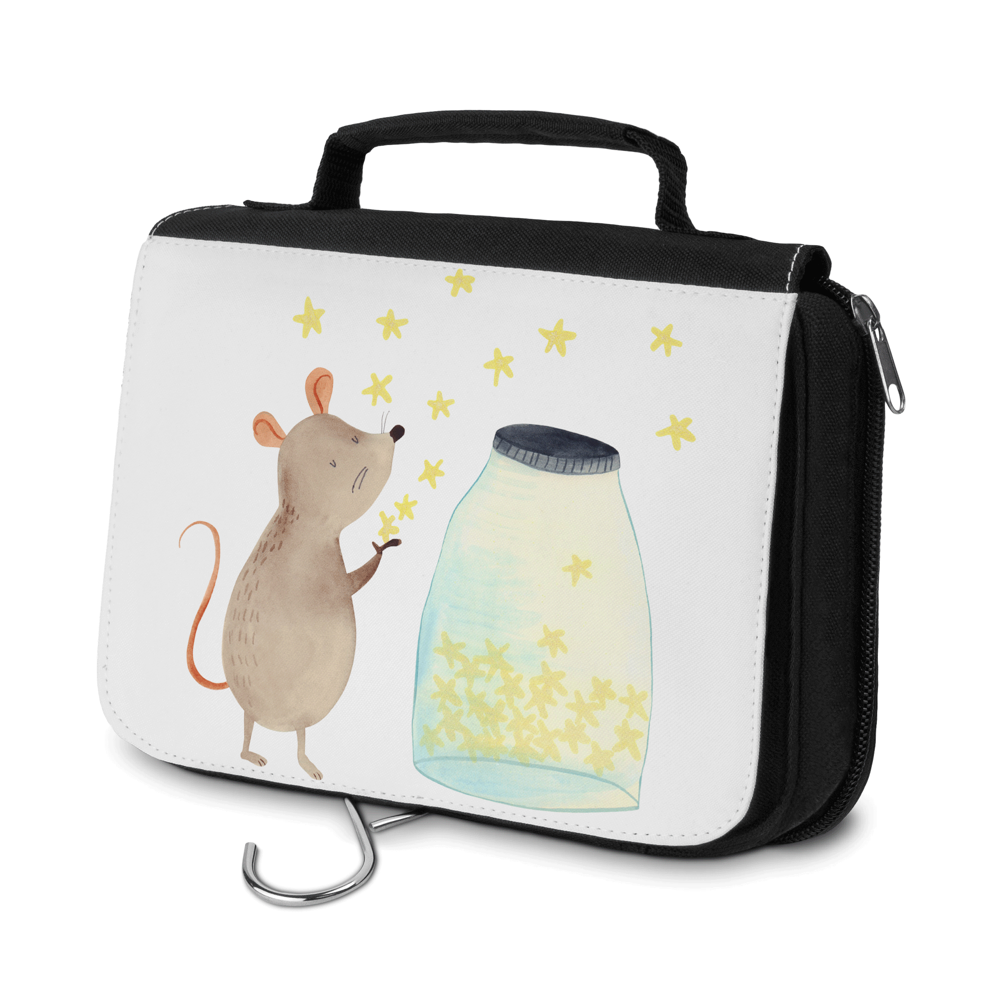 Lass dich von der süßen Maus verzaubern, die vor einem Glas funkelnder Sterne sitzt und jeden einzelnen in die Freiheit entlässt. Sie träumt von Abenteuern und entführt dich mit ihren Sternen auf eine wunderbare Reise durch die Weiten des Universums.