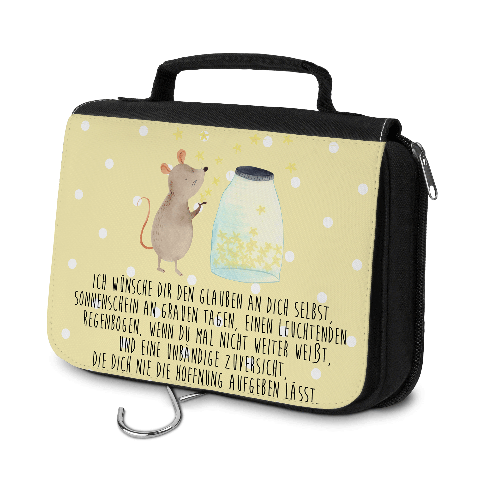 Kulturbeutel Maus Sterne - mit Spruch - Gelb Pastell