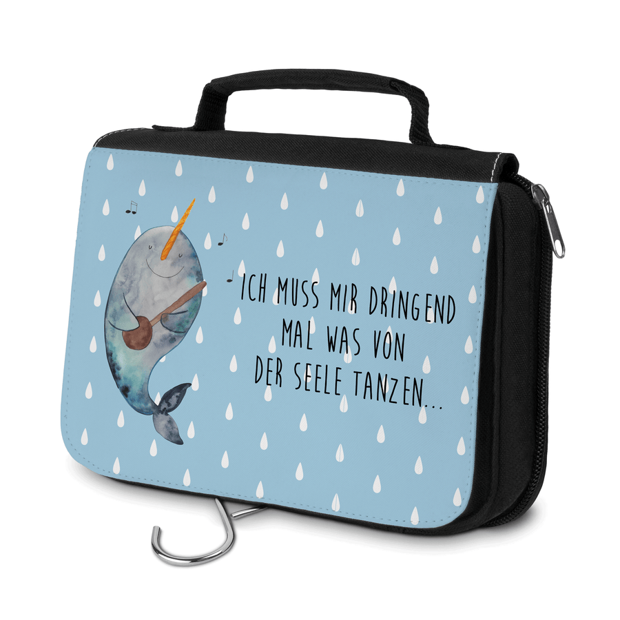 Kulturbeutel Narwal Gitarre - mit Spruch - Blau Pastell