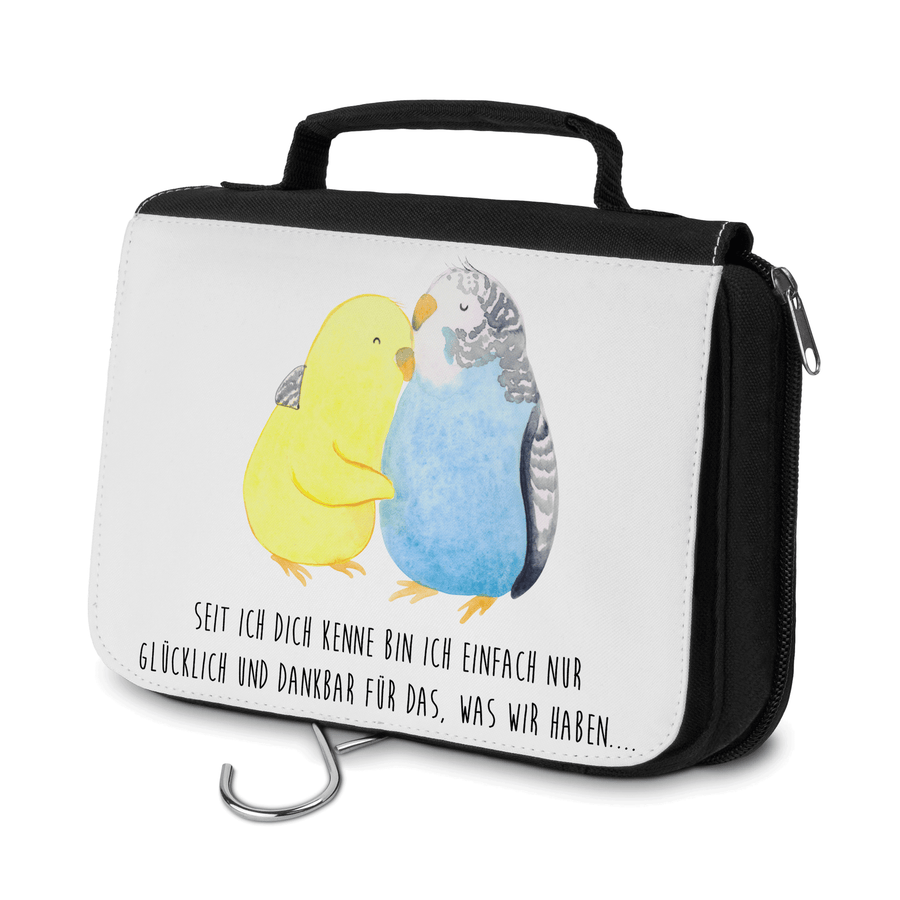 Kulturbeutel Wellensittich Liebe - mit Spruch - Weiß