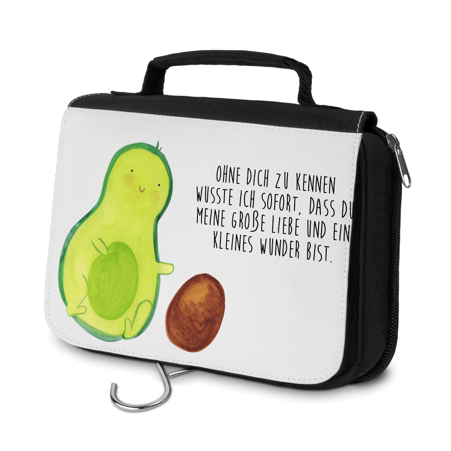Kulturbeutel Avocado rollt Kern - mit Spruch - Weiß