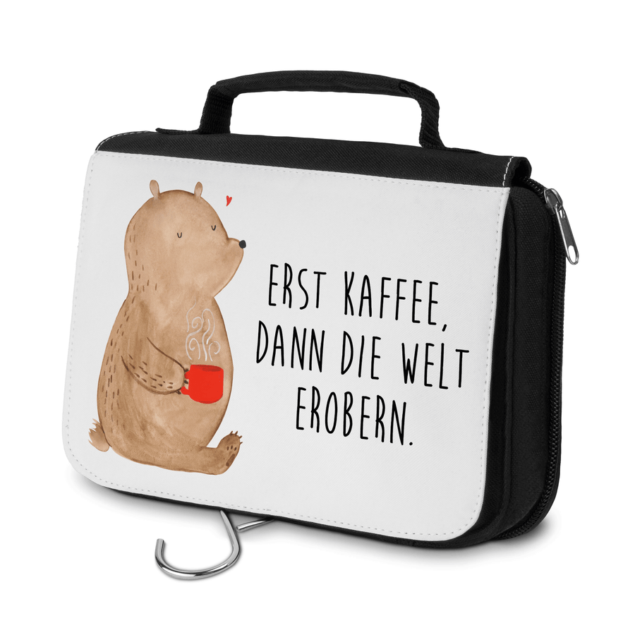 Kulturbeutel Bär Kaffee - mit Spruch - Weiß