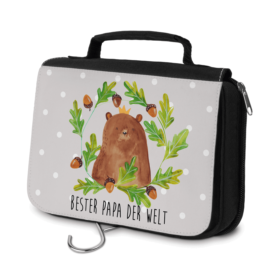 Kulturbeutel Bär König - mit Spruch - Grau Pastell
