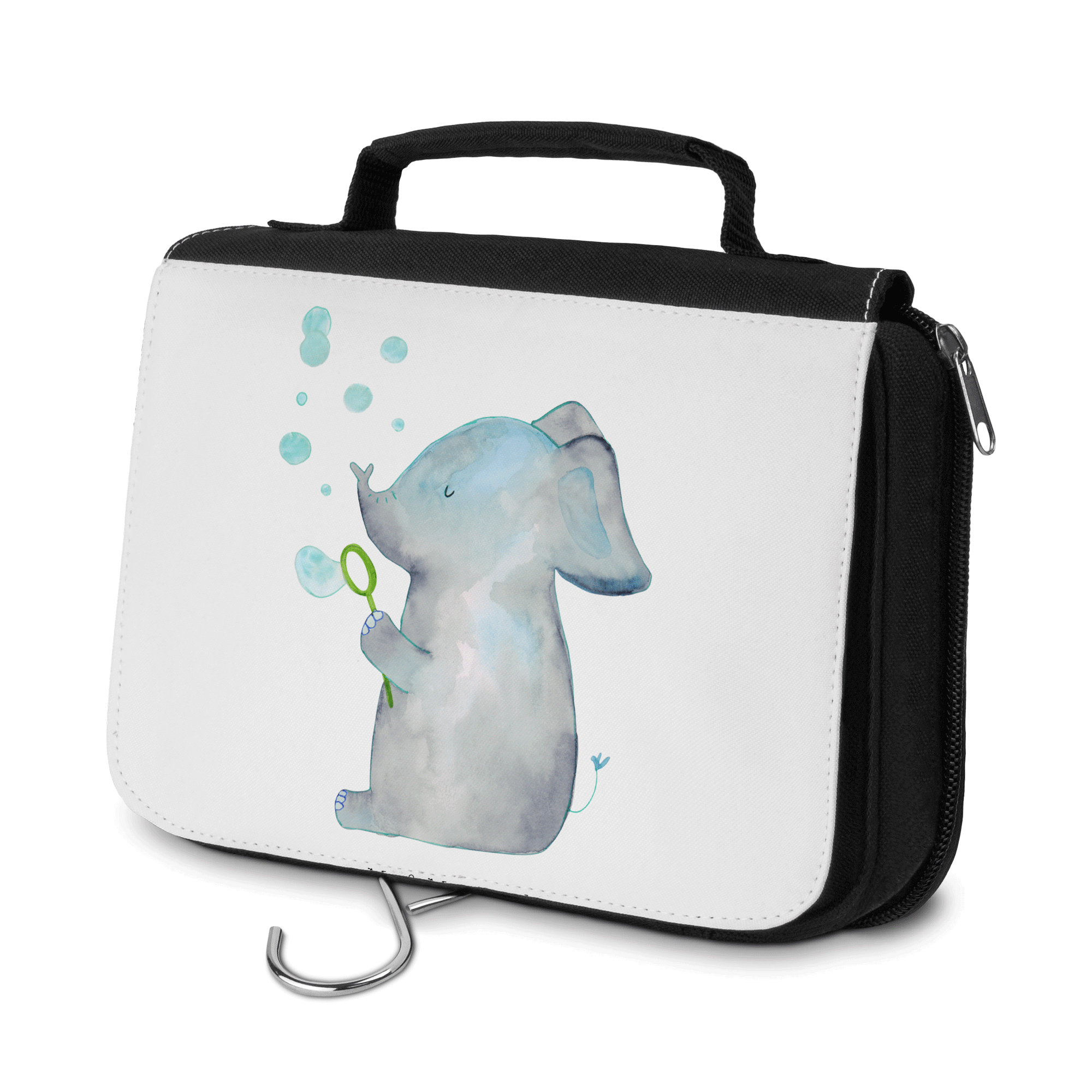 Kulturbeutel Elefant Seifenblasen - mit Spruch - Weiß