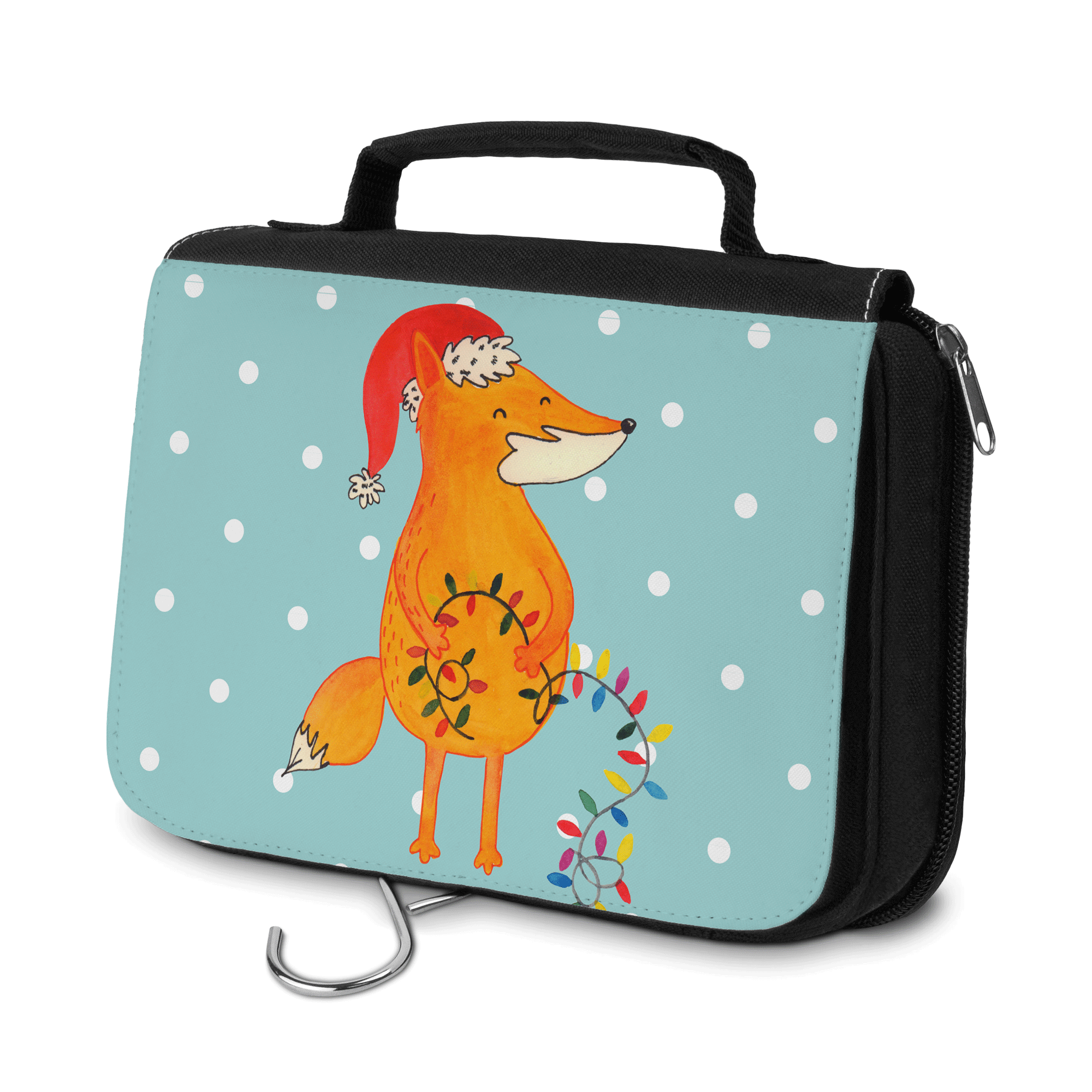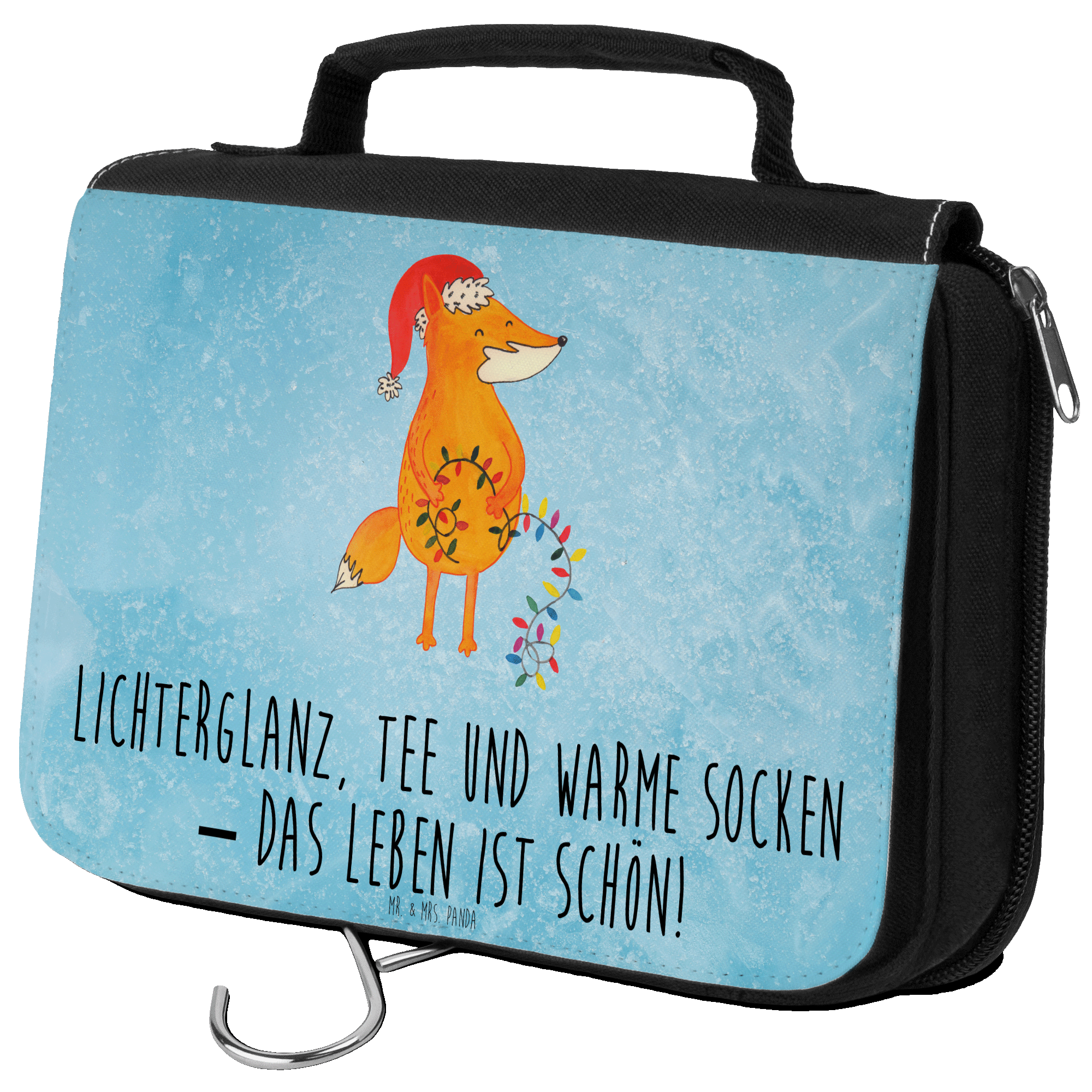 Kulturbeutel Fuchs Weihnachten - mit Spruch - Eisblau