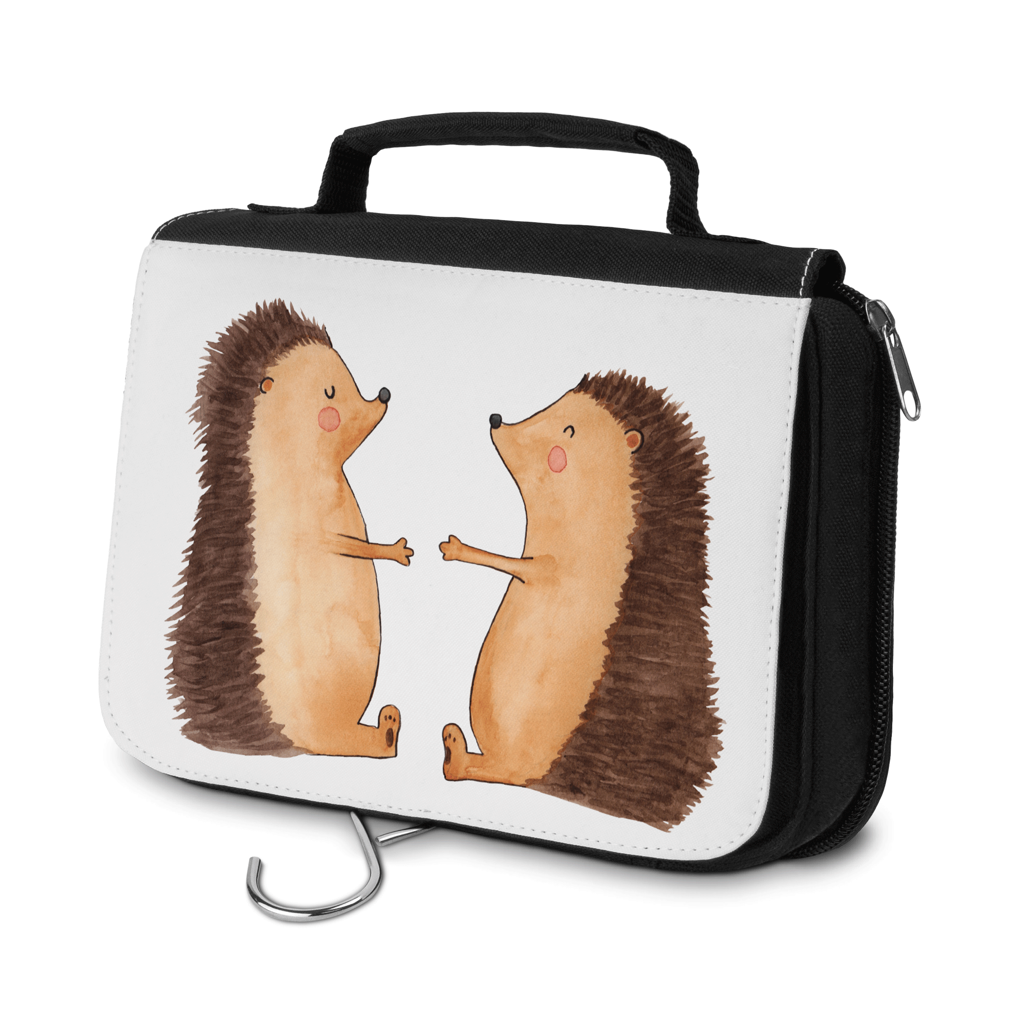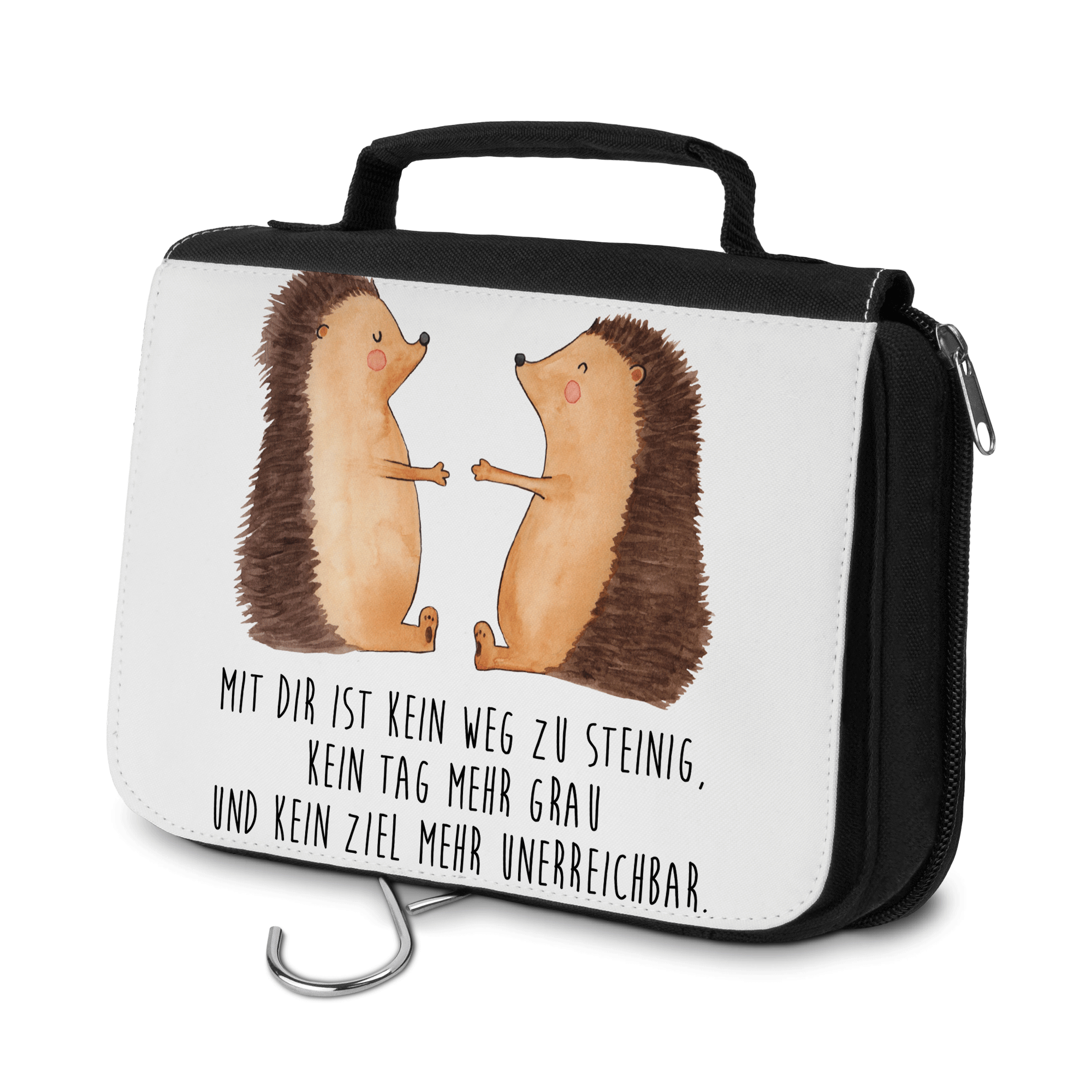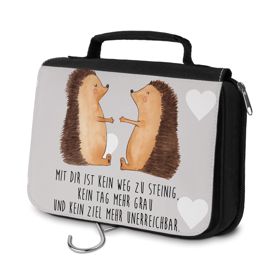 Kulturbeutel Igel Liebe - mit Spruch - Grau Pastell