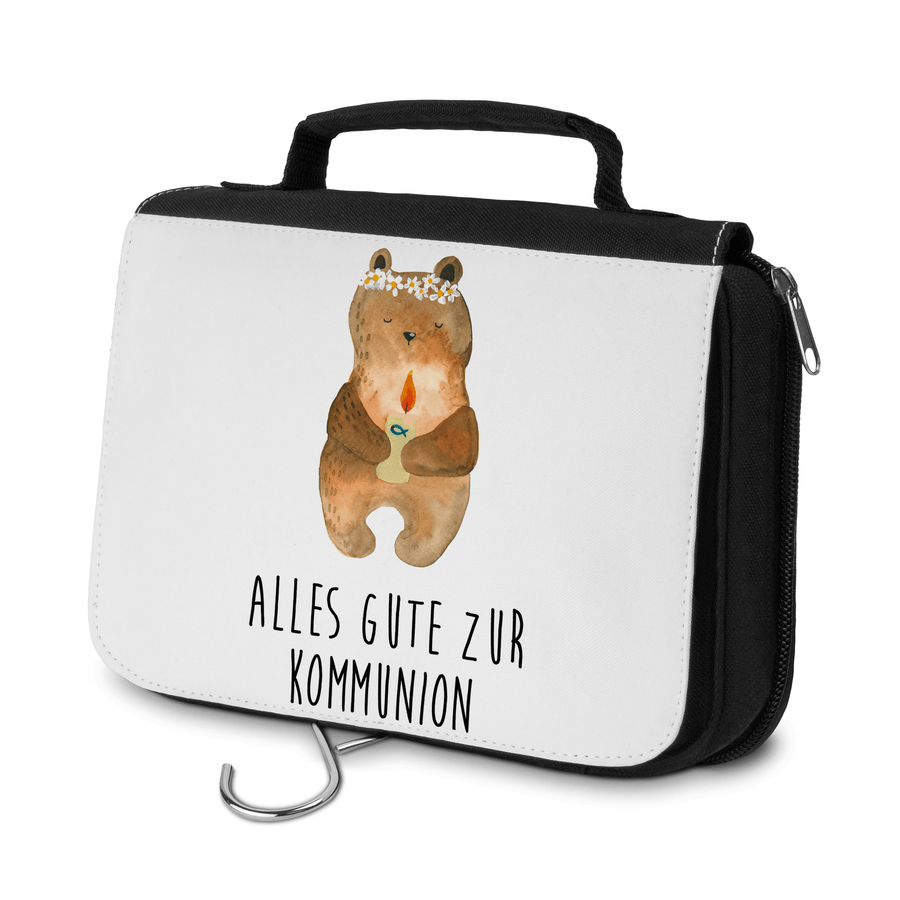 Kulturbeutel Kommunion-Bär - mit Spruch - Weiß