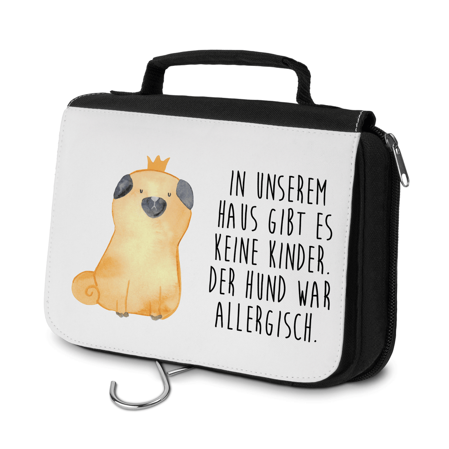 Kulturbeutel Mops Krone - mit Spruch - Weiß