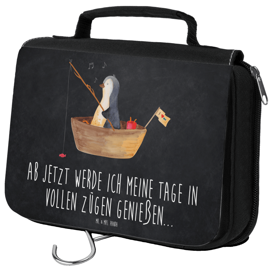 Kulturbeutel Pinguin Angelboot - mit Spruch - Kreidetafel