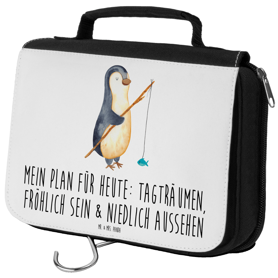 Kulturbeutel Pinguin Angler - mit Spruch - Weiß